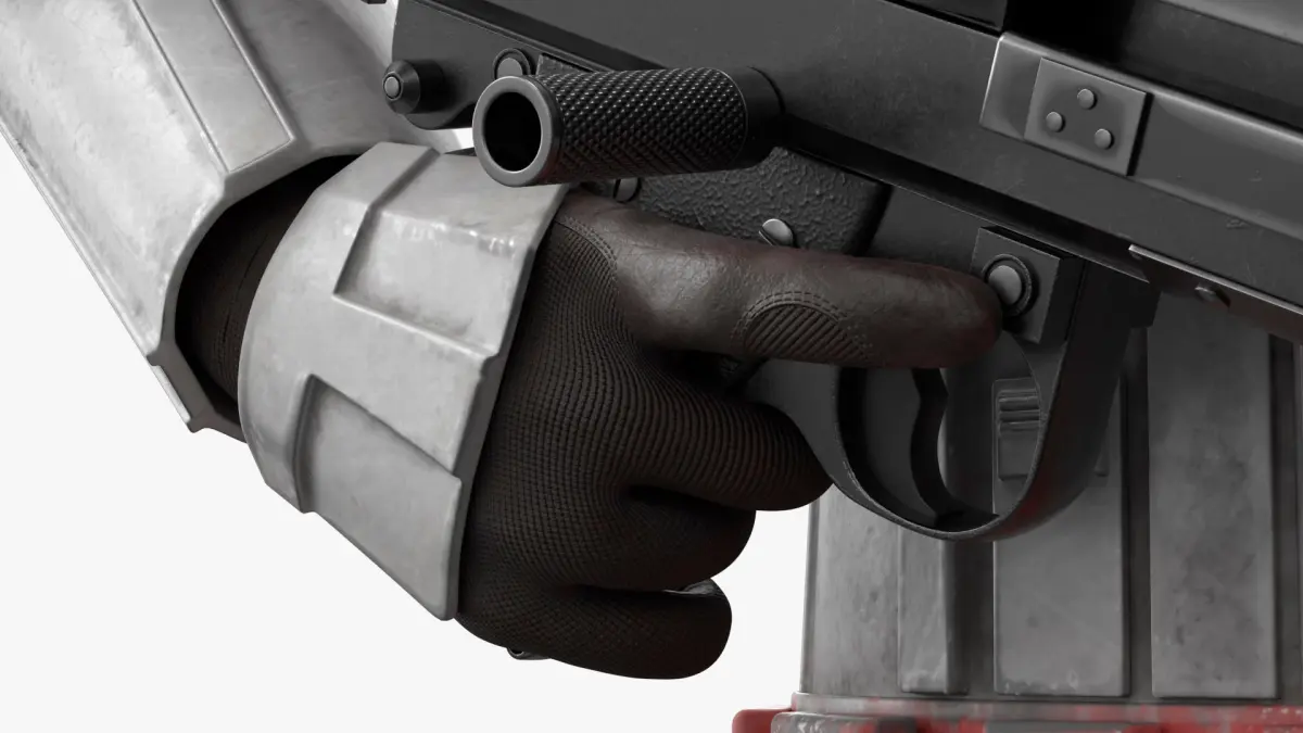 Star Wars Shock Trooper Equipped with Blaster Rifle Worn Armor is a 3d model of futuristic sci-fi combat gear, inspired by iconic battle uniforms from popular space-themed franchises.