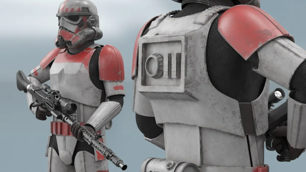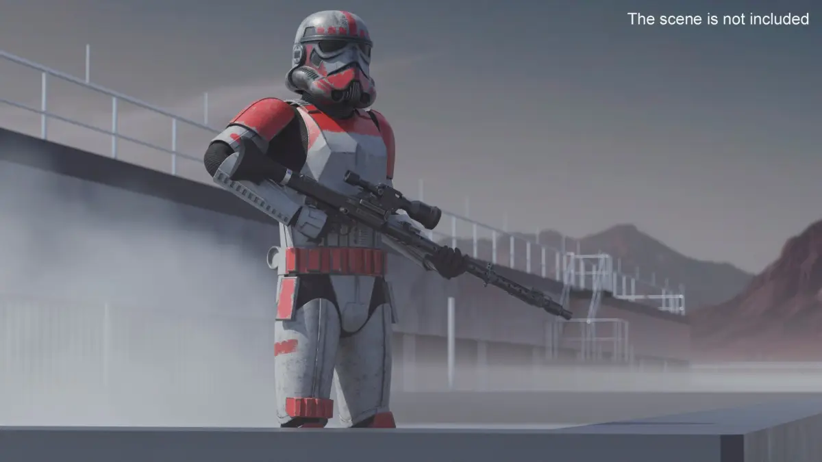 Star Wars Shock Trooper Equipped with Blaster Rifle Worn Armor is a high quality, photo real 3d model that will enhance detail and realism to any of your rendering projects. The model has a fully textured, detailed design that allows for close-up renders, and was originally modeled in 3ds Max 2020 and rendered with V-Ray. Renders have no postprocessing!