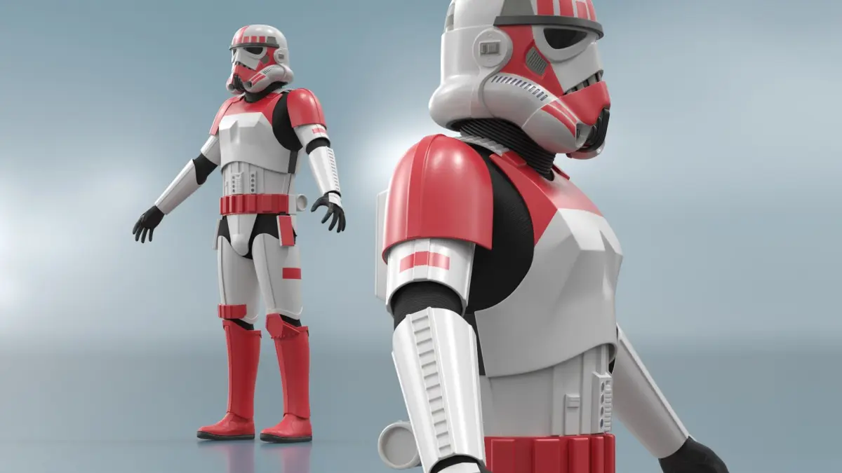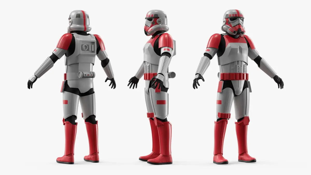 Star Wars Shock Trooper Rigged is a three-dimensional model of elite variant of clone trooper from the Star Wars universe, known for their red-striped armor and military police role within the Galactic Republic.