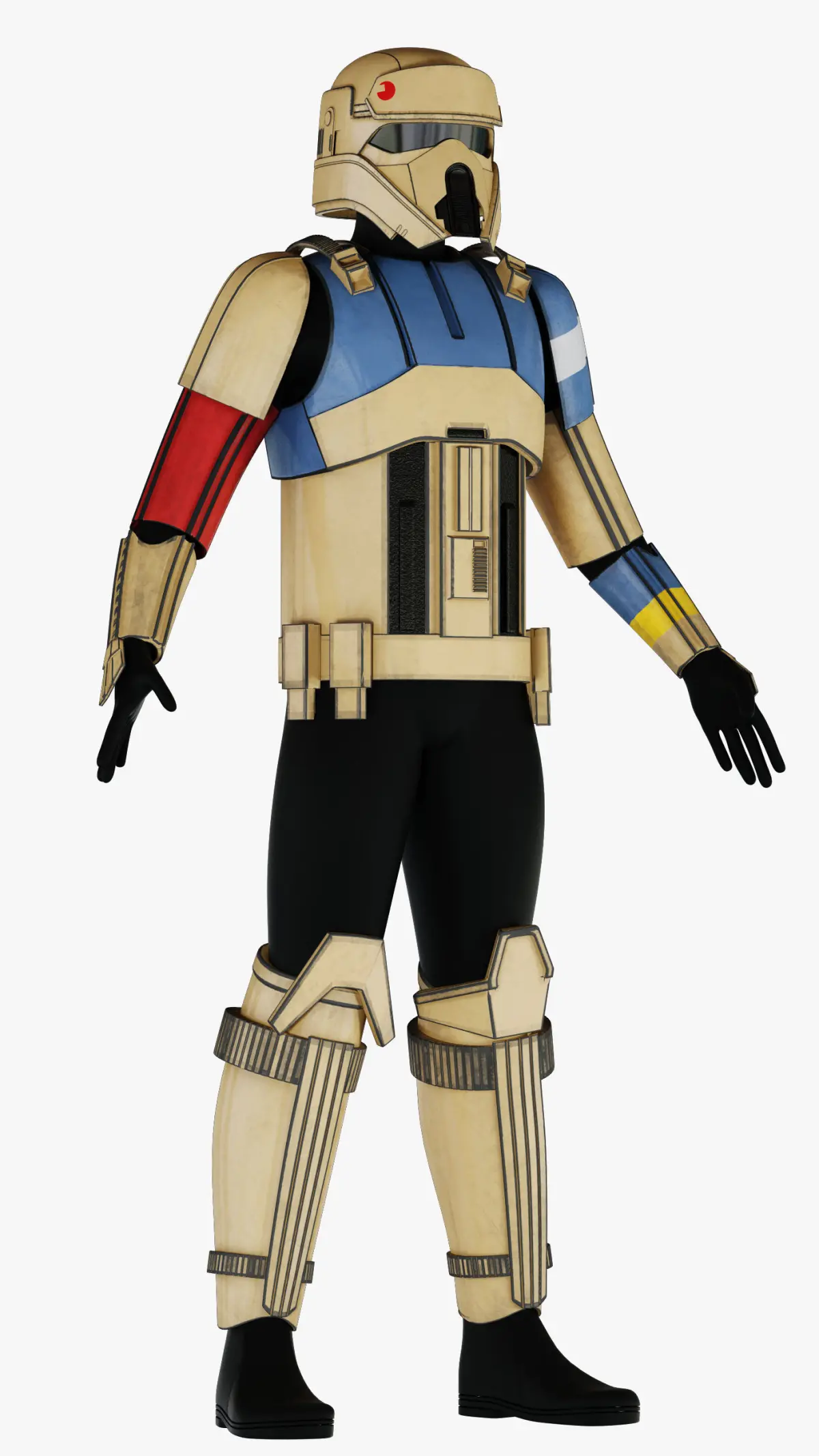 Specialist stormtroopers stationed at the top secret Imperial military headquarters on Scarif, Shoretroopers patrol the beaches and bunkers of the planetary facility.