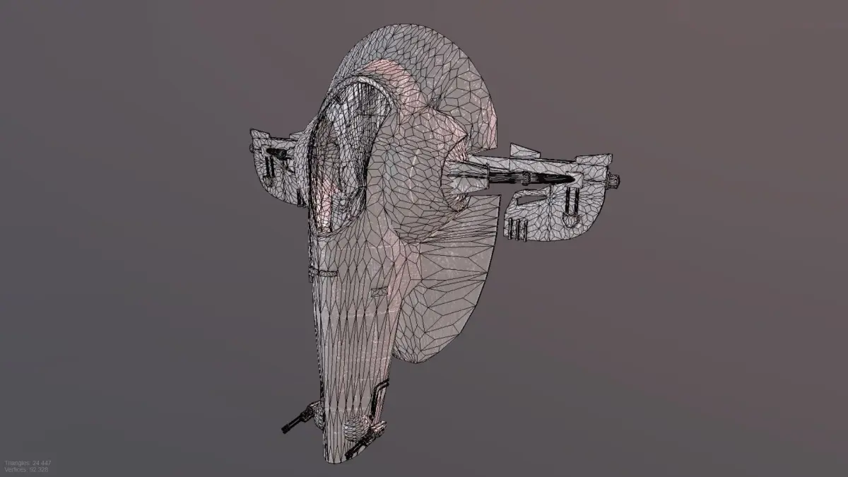 Hello! Here you see a low-poly Star wars slave-1 starship model that is available for download after purchase in 3 formats: .FBX .OBJ .STL + PBR textures in 2048x2048 format. Use play button on second picture to view my model in fullview mode. I hope you enjoyed my work and I will be glad to see you again :)