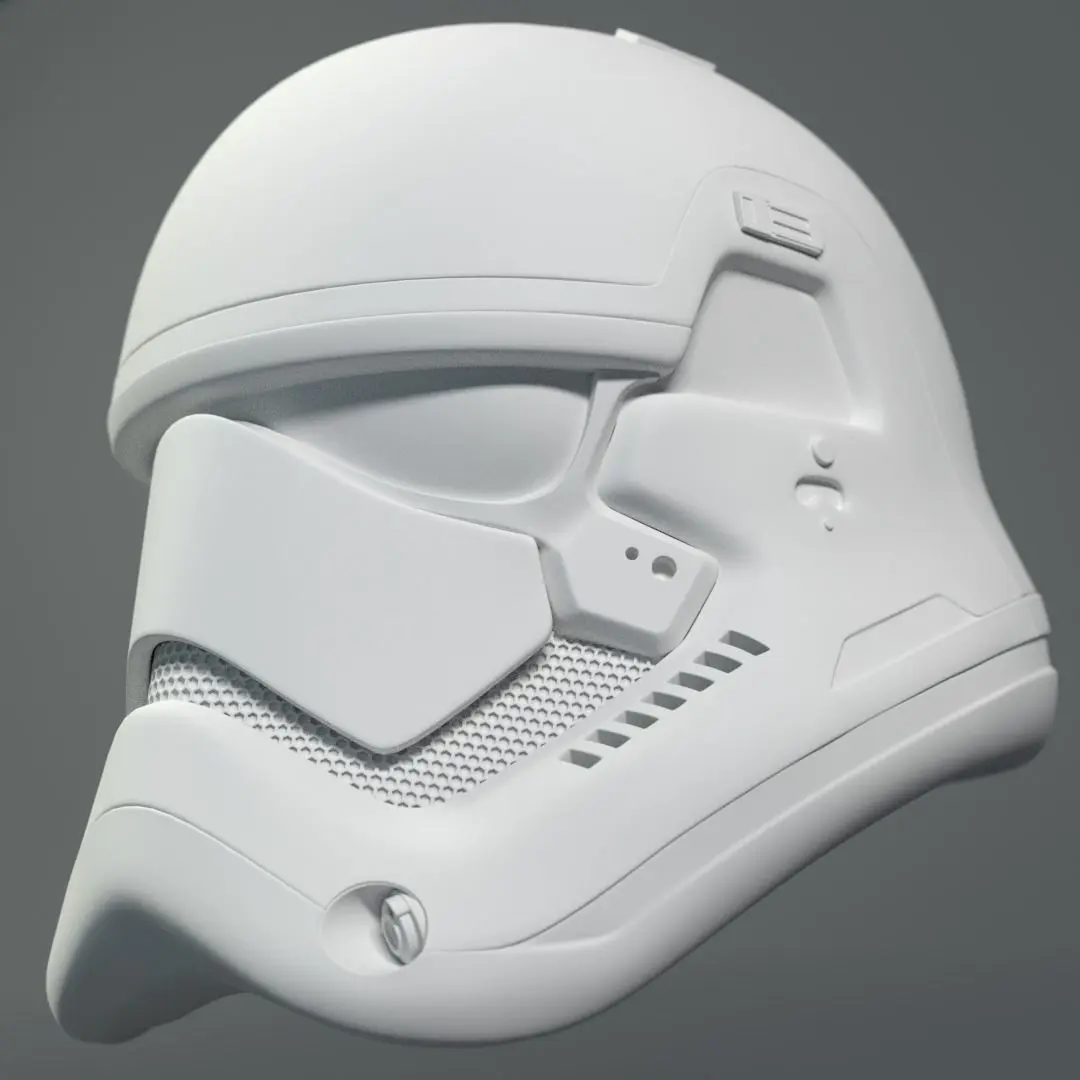This is a faithful reconstruction of the First Order Stormtrooper helmet, which appears in the episode VII of the Star Wars Saga.