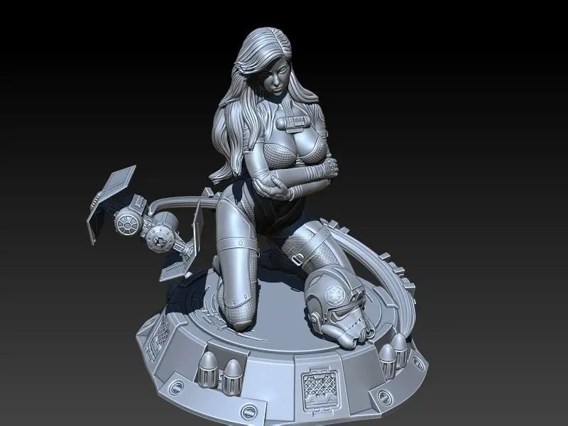 I cute PinUp Girl starring as a Tie Bomber pilot from Star Wars universe. Model for 3D printing. The model was tested in FDM printers. The whole piece has 30cm of height in 100%scale. Provided file full assembled and in to parts.