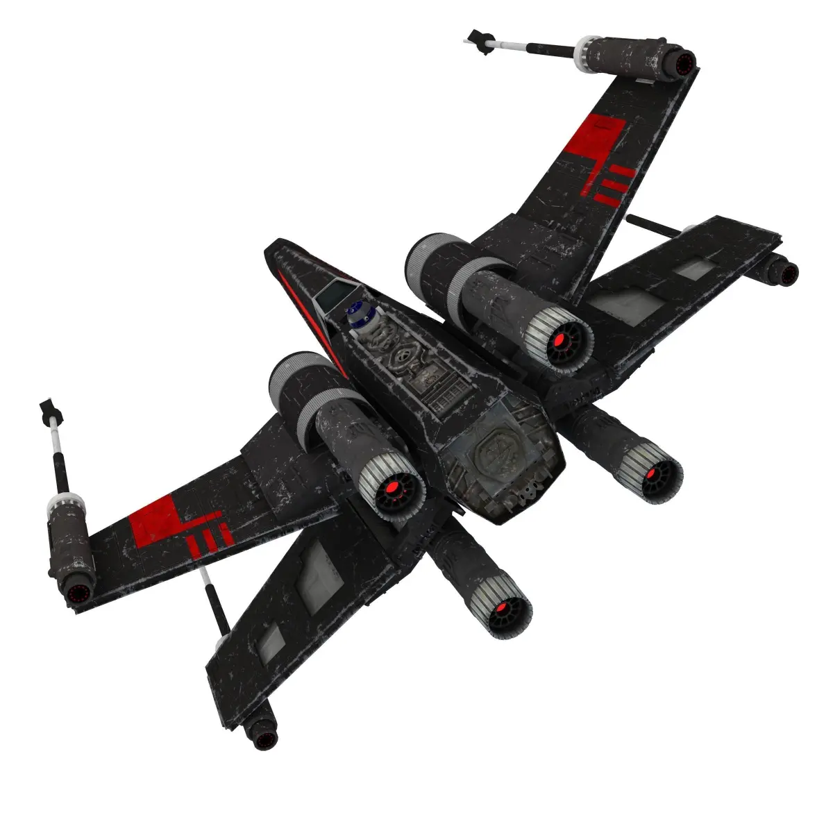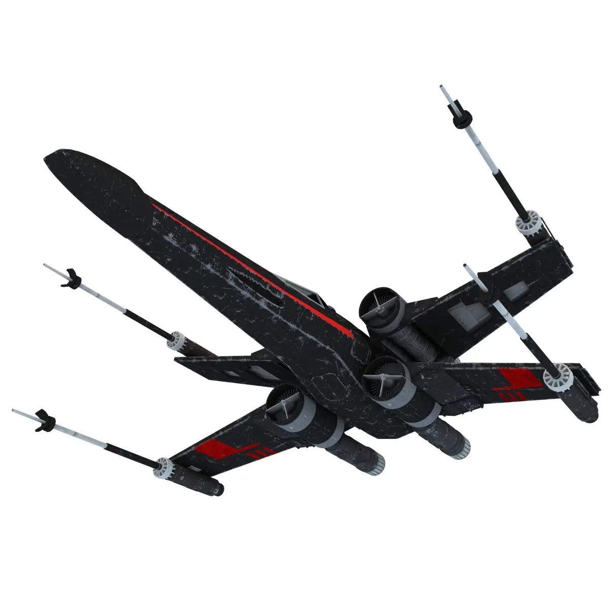 This 3D model is Resistance a X-Wing Fighter Black T-70 which is used in the film Star Wars.