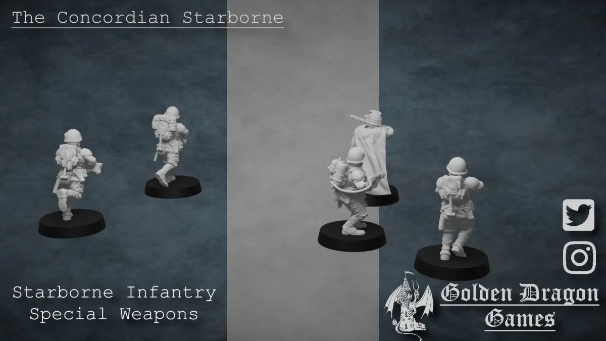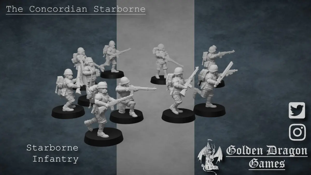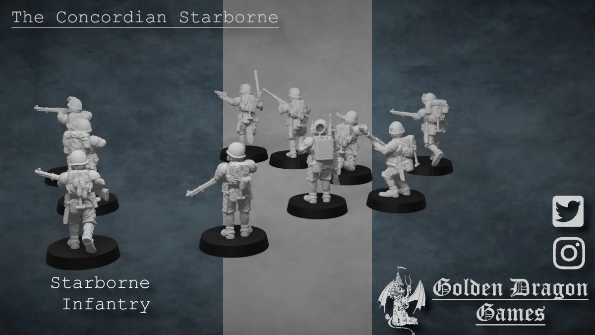 Borne across the stars to the fiercest battlefields, these infantrymen are the front line of the Concordian war machine.