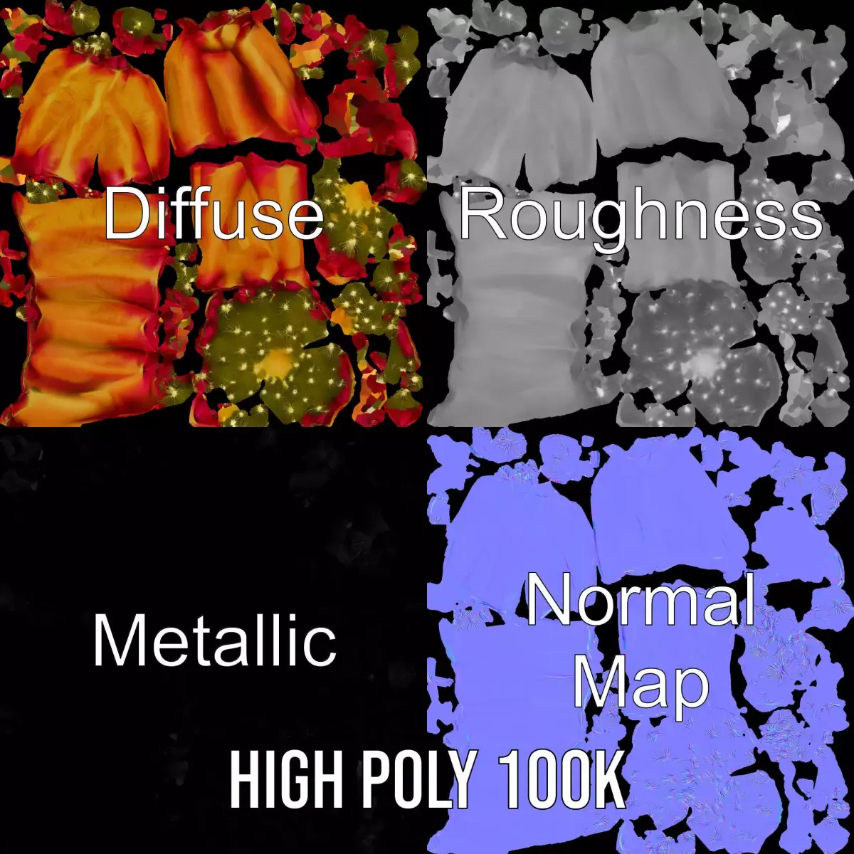 All textures are high-resolution 4096x4096 and include PBR, Diffuse, NormalMap, and reflection/roughness/metallic maps, ensuring compatibility with all modern rendering engines. The model is accurately unwrapped with no overlapping UVs, providing seamless texturing.