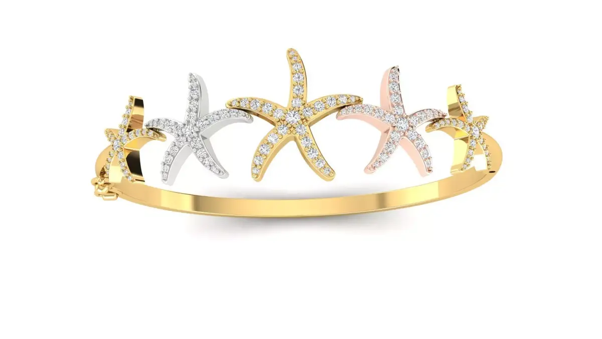 This enchanting bracelet captures the whimsy of the sea with its vibrant starfish design. It's a playful yet sophisticated piece, perfect for those who love unique and colorful jewelry. The alternating starfish links, adorned with dazzling micro-pave diamonds, create a stunning visual that’s sure to attract attention. This bracelet is an excellent choice for a summer-inspired collection or a fun, standout accessory.