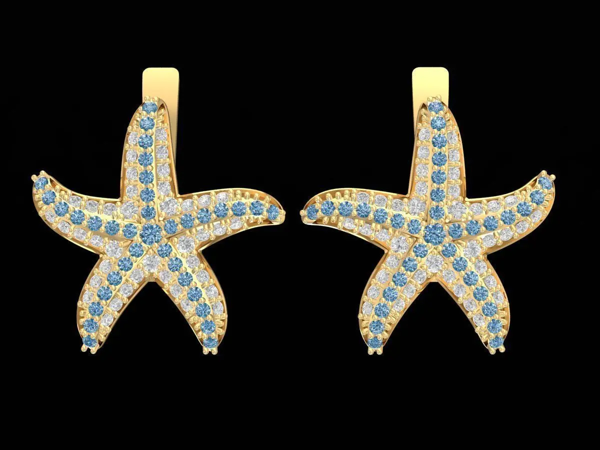 This Starfish Diamond Hoop Earrings 3D Model features a charming ocean-inspired design crafted with clean curves and elegant stone settings. The starfish silhouette is modeled with smooth organic geometry, giving each arm natural flow and symmetry. Every surface is optimized for precise gem placement, ensuring the stones sit securely and reflect light beautifully once cast and polished. The model includes a secure hoop-style mechanism with properly measured thickness for stability and comfort during real-life wear.