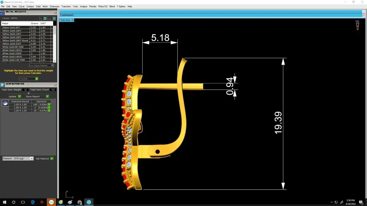 All technical previews shown in the images display accurate measurements, metal thickness, stone sizes, and estimated casting weights for various gold purities. Each component is separated for easier production, including the starfish body, prong settings, hinge, and hoop latch. Jewelers can adjust gemstone types, switch to CZ or lab-grown stones, or modify metal thickness depending on manufacturing needs.