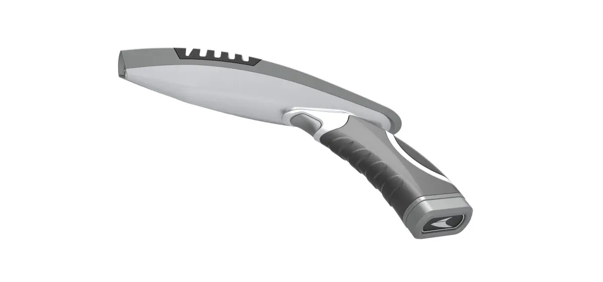 Model consists of parts: Body bottom part, Body top part, Bottom hub, Bottom logo, Bottom spacer, Emitter, Front LED, Front pin, Grip, Handle insert, Handle, Left grid, Left insert, Rear pin, Rear top insert, Right grid, Right insert, Trigger.