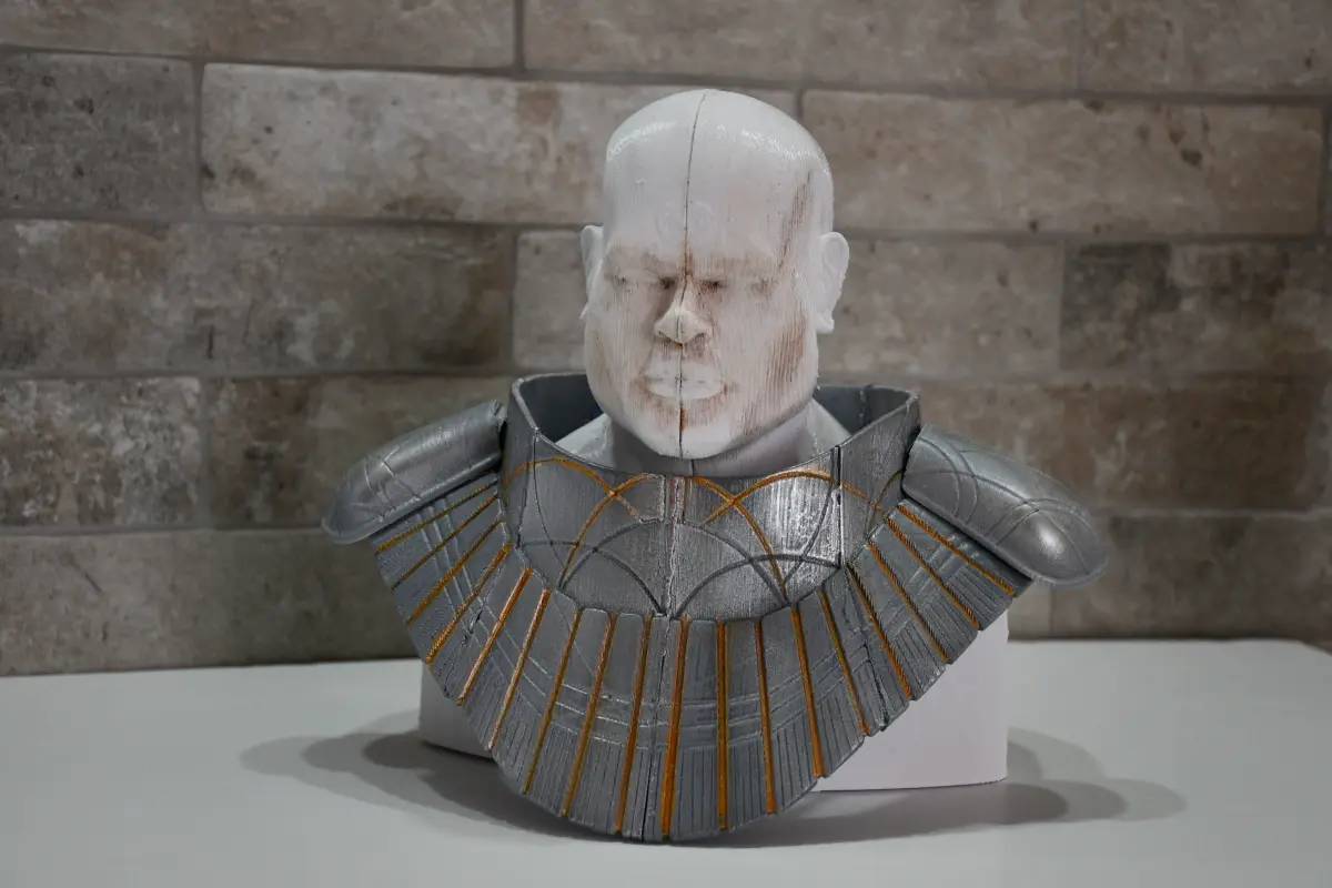 I tried adding joints to help connect the pieces.all the STL are aligned for how i printed them, which i hope is easy to print.ive also added the parts as whole pieces so you can cut them how you like.I printed everything 50% as i dont have room for a large cosplay piece, so some of the detail on the printed piece dissapear.all the pieces were printed on my Tronxy x5, which is calibrated for large prints, and not for detail.