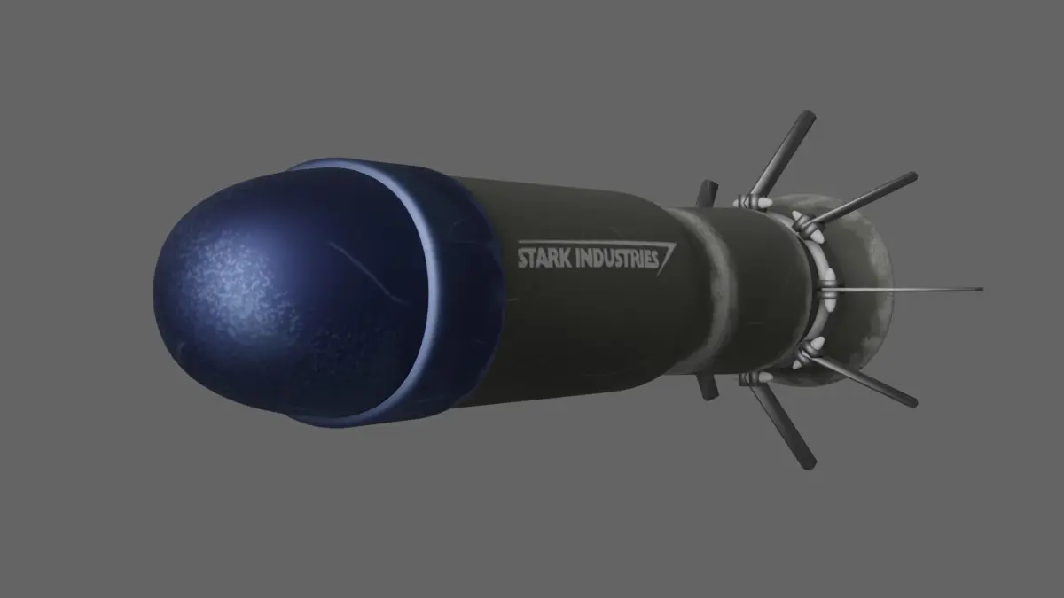 Tony Stark missile Stark Industries Missile from Iron Man 1. Made in Blender and rendered with Eevee.