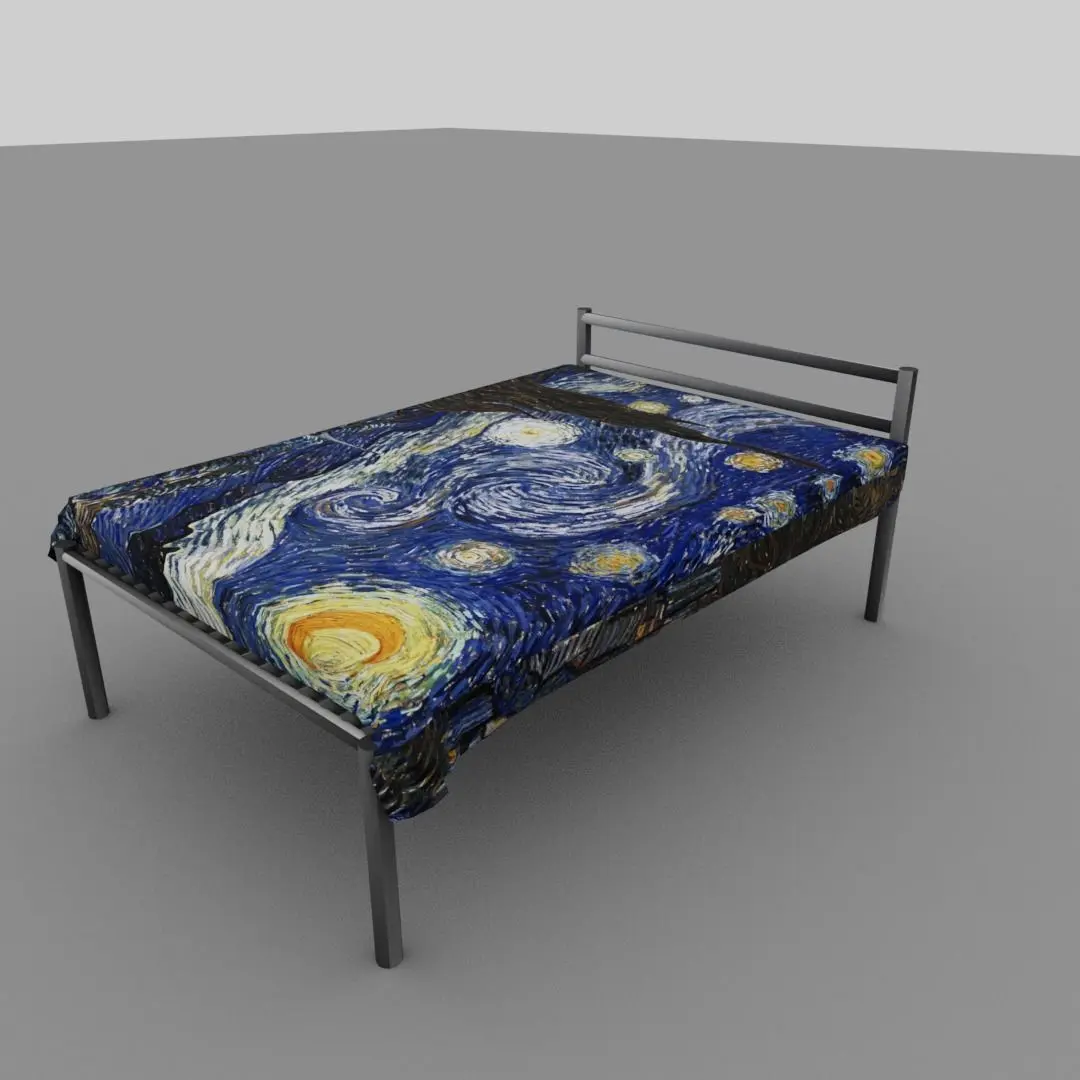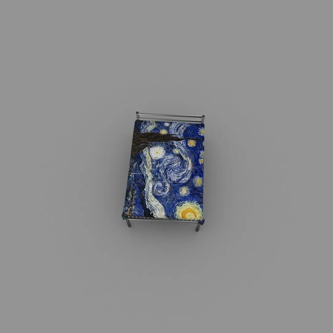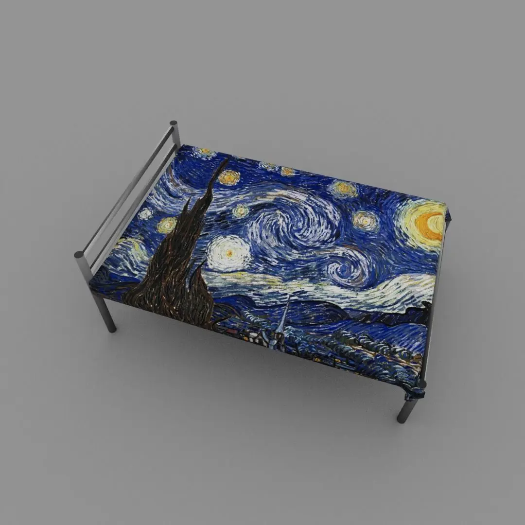 Starry Night bed CGI model... The model is about a fabric cloth with starry night texture and a metal bed that looks very realistic