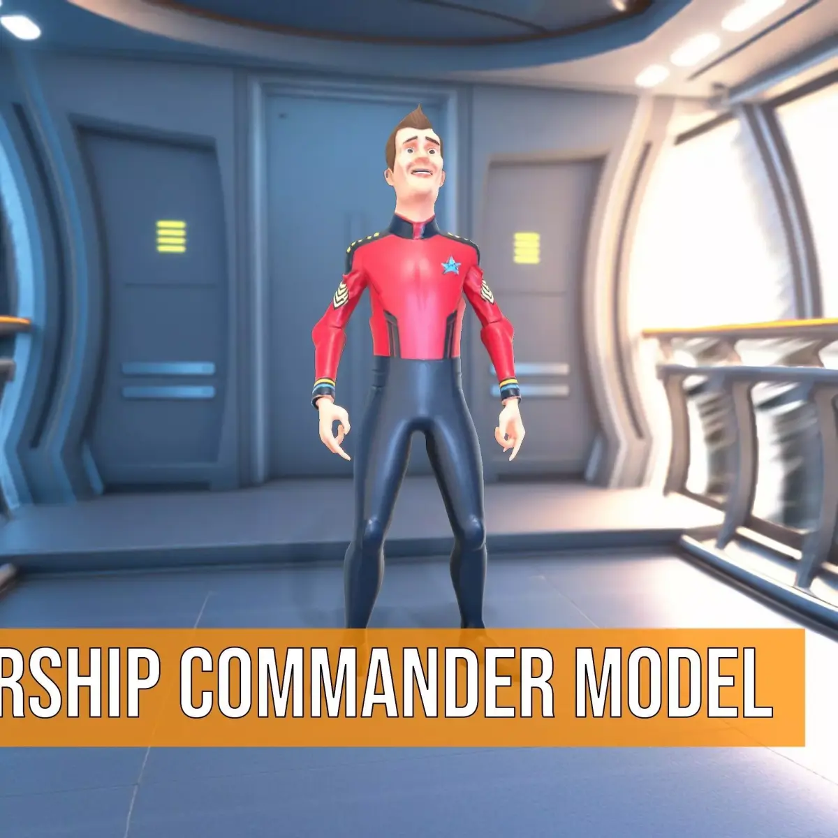 This Starship Commander model is perfect for use in animated films, games, and simulations. Its detailed design captures the essence of a futuristic space leader, featuring a vivid red uniform with intricate textures.