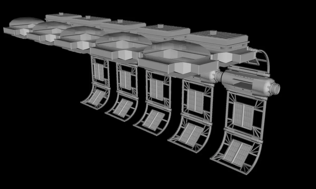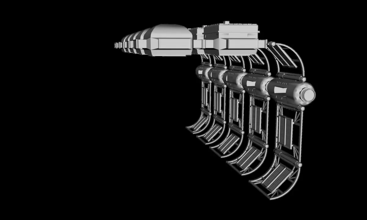 Each of the pieces of this model are created individually and I will upload them later as seperate components that can be pieced together to form any x,y,z size but I will also increase the cost of the model.This model is priced at a low point to allow you to work with it in combination with other smaller sized vessels.