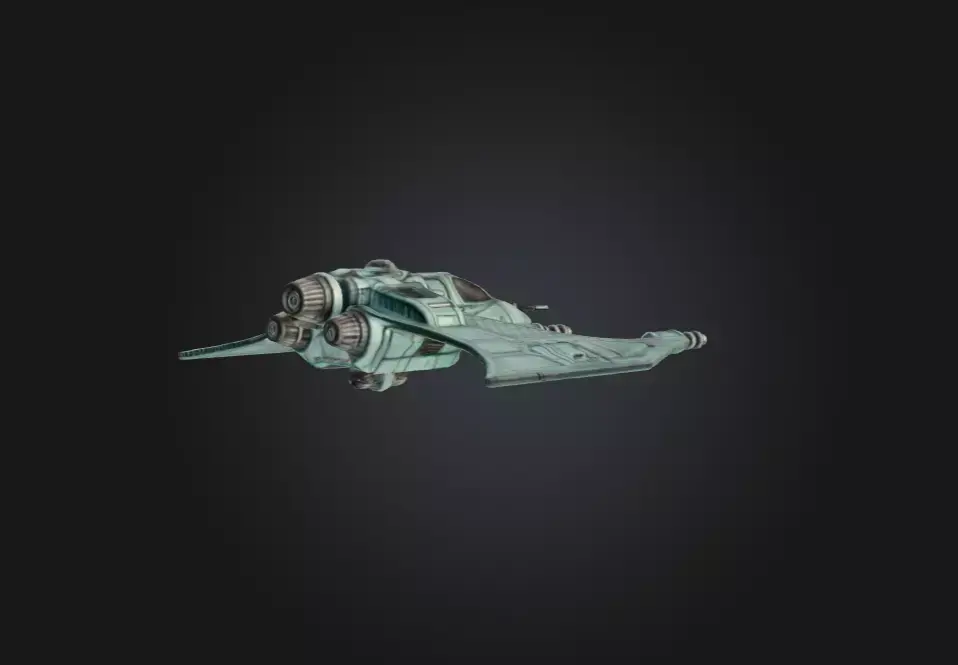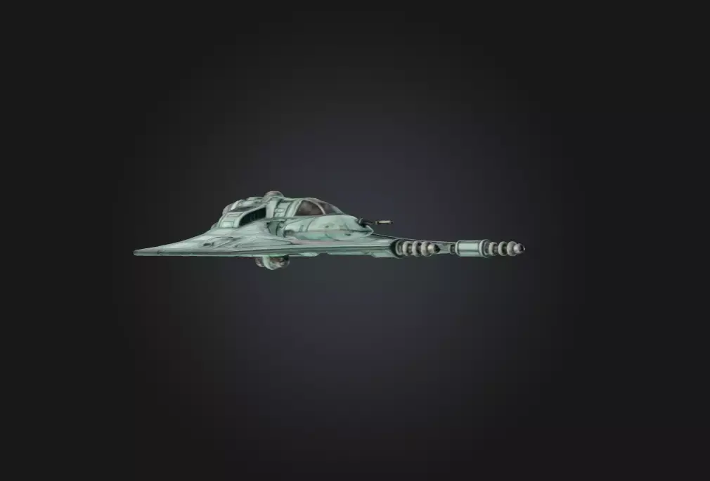 The subtle coloration—a desaturated teal with metallic accents—evokes a sense of advanced composite alloys and specialized coatings used to reduce radar signature and enhance durability. Paneling and surface details add realism and visual depth, making the ship a strong asset for sci-fi games, animations, world-building projects, or concept art collections. Whether used as a reconnaissance craft, elite fighter ship, or prototype interceptor, the Starship Vector introduces a dynamic and visually compelling presence to any futuristic setting.