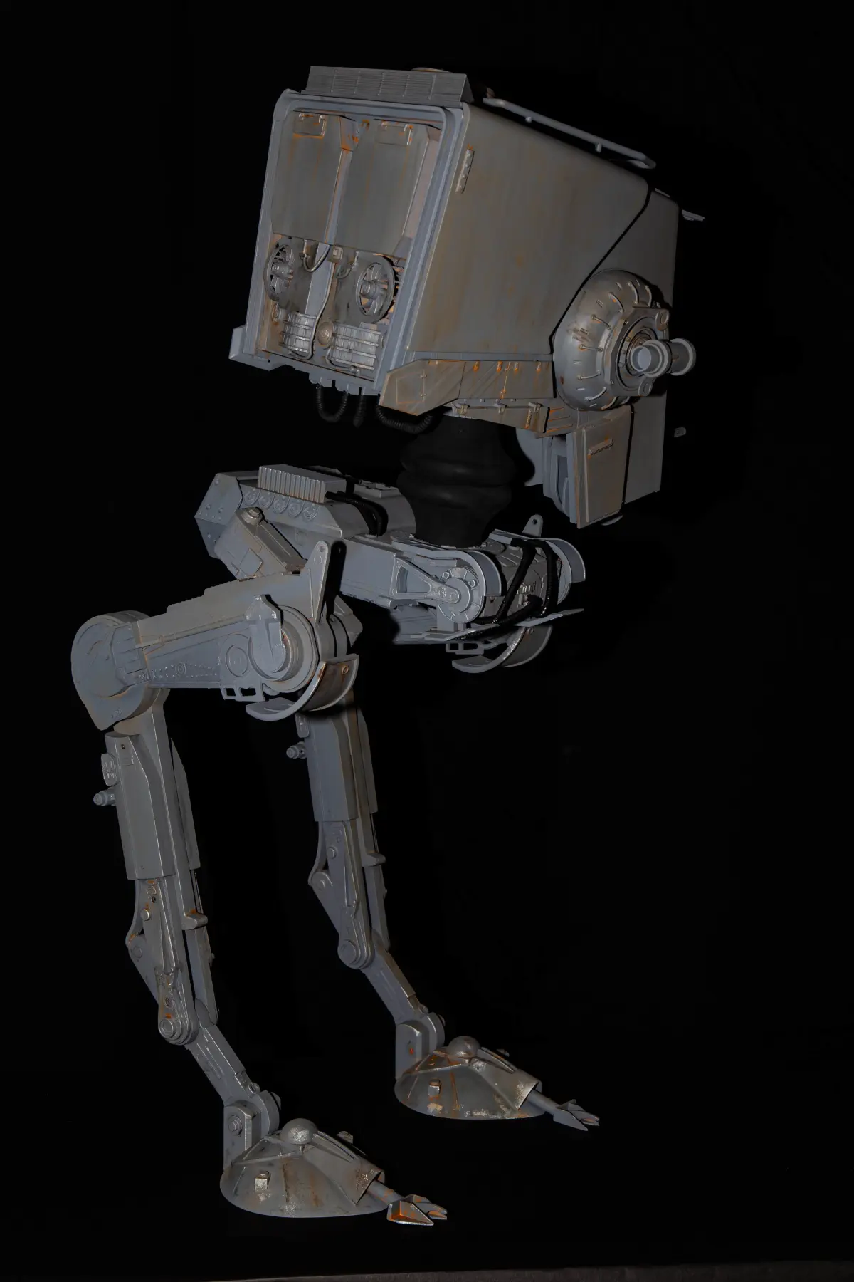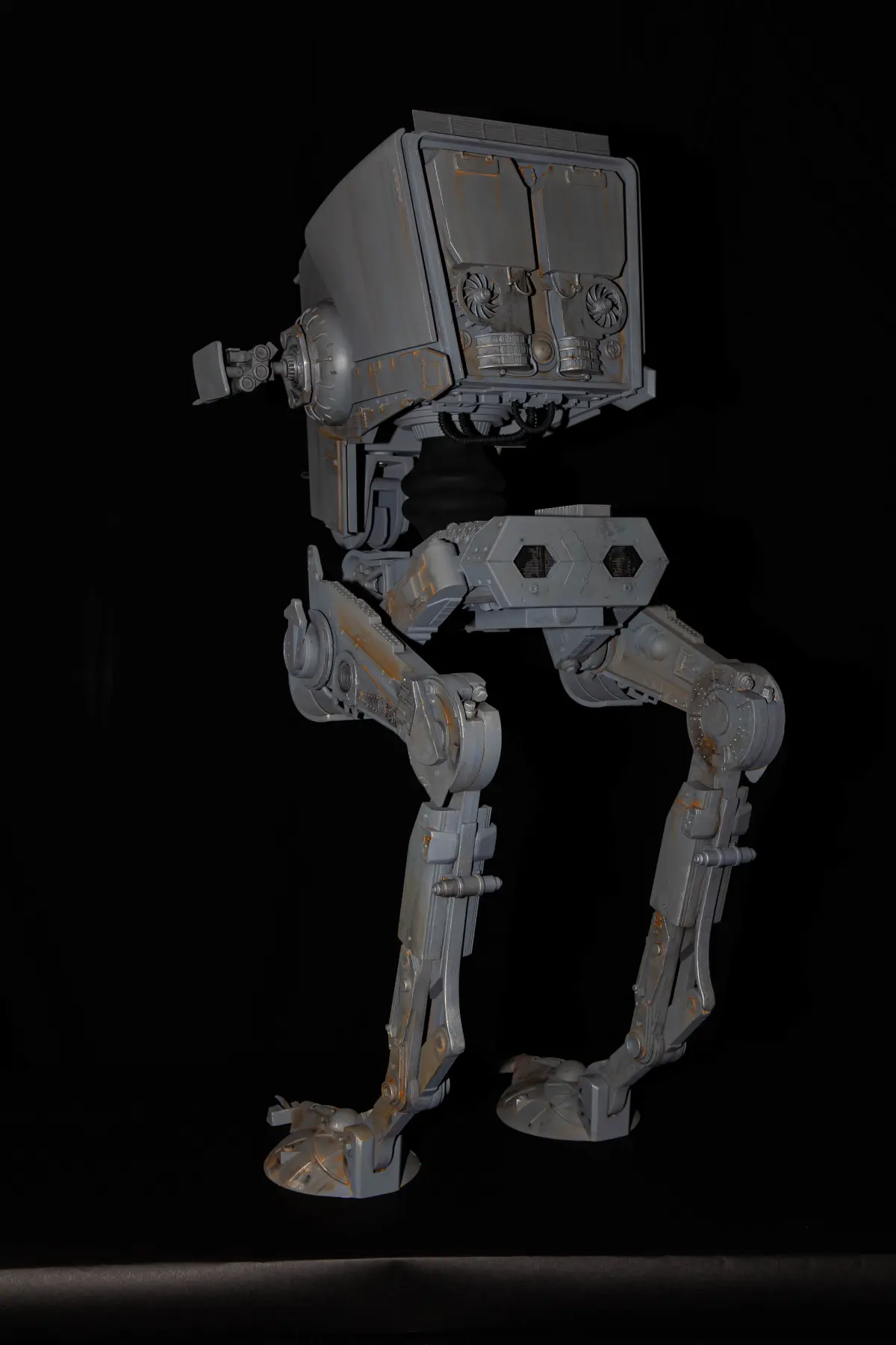 Starwars AT-ST.Another addition to my growing fleet of starwars vehicles. this fella stands unsupported at 730mm, the roof is removable to view cockpit which will have the equipment bay fitted out in the near future, toes, neck, top hatch and side weapons all move. this was a fun build.stl files modelled at 1/48th scale, this model is scaled up to 400% which makes it 1/18th scale.model consists of 111 stl files in seperate folders for each part of the model, also included are drawings and photos showing the construction of a metal framework for the legs, this is optional but if you want to put the metal skeleton in the drawings should help.there is a file called Jigs that can help with the orientaion of the holes but to be honest i found the easiest way was to print out the lage parts then measure and fit the metal bars to fit and using a sharp point scribe the hole locations then drill and file to shape.all cross bars are dimensioned.