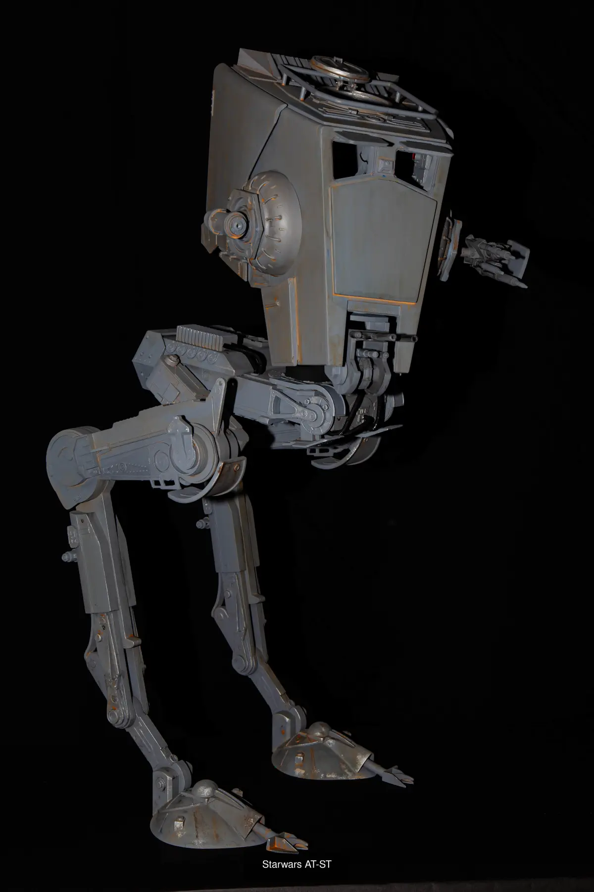 Starwars AT-ST. Another addition to my growing fleet of starwars vehicles. this fella stands unsupported at 730mm, the roof is removable to view cockpit which will have the equipment bay fitted out in the near future, toes, neck, top hatch and side weapons all move. this was a fun build. stl files modelled at 1/72 nd scale, this model is scaled up to 400% which makes it 1/18th scale. model consists of 111 stl files in seperate folders for each part of the model, also included are drawings and photos showing the construction of a metal framework for the legs, this is optional but if you want to put the metal skeleton in the drawings should help. there is a file called Jigs that can help with the orientaion of the holes but to be honest i found the easiest way was to print out the lage parts then measure and fit the metal bars to fit and using a sharp point scribe the hole locations then drill and file to shape. all cross bars are dimensioned.