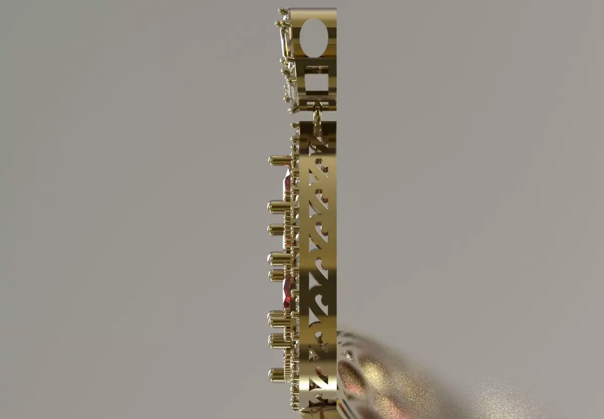 Appearance and ApplicationThe JP0398 pendant, with its dense cluster of red stones, diamond-set bezel, and decorative crown, symbolizes Intense Love, Aristocratic Grandeur, Dramatic Elegance, and Concentrated Wealth. This is a Supreme Statement Cocktail Pendant that is a truly distinctive and impactful choice for formal parties, lavish evening events, or as a family heirloom due to its size, intricate design, and multiple sparkles.