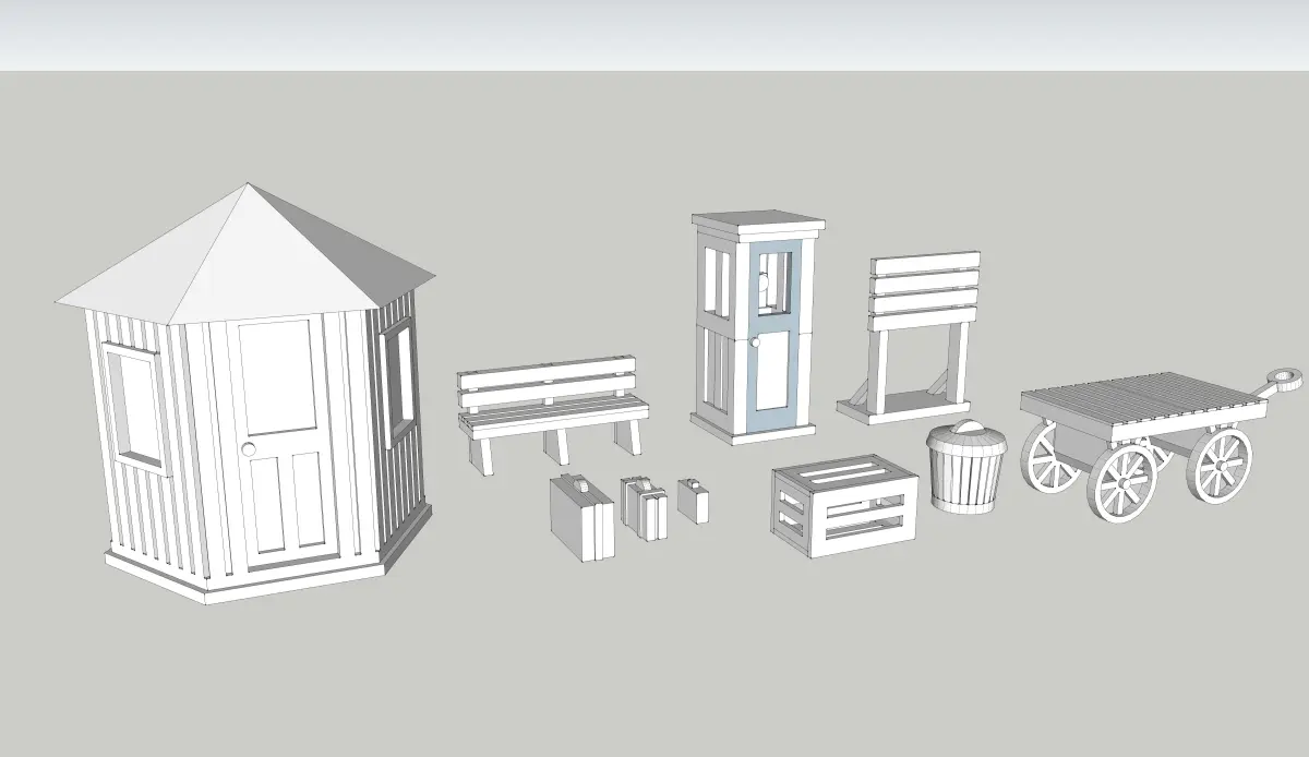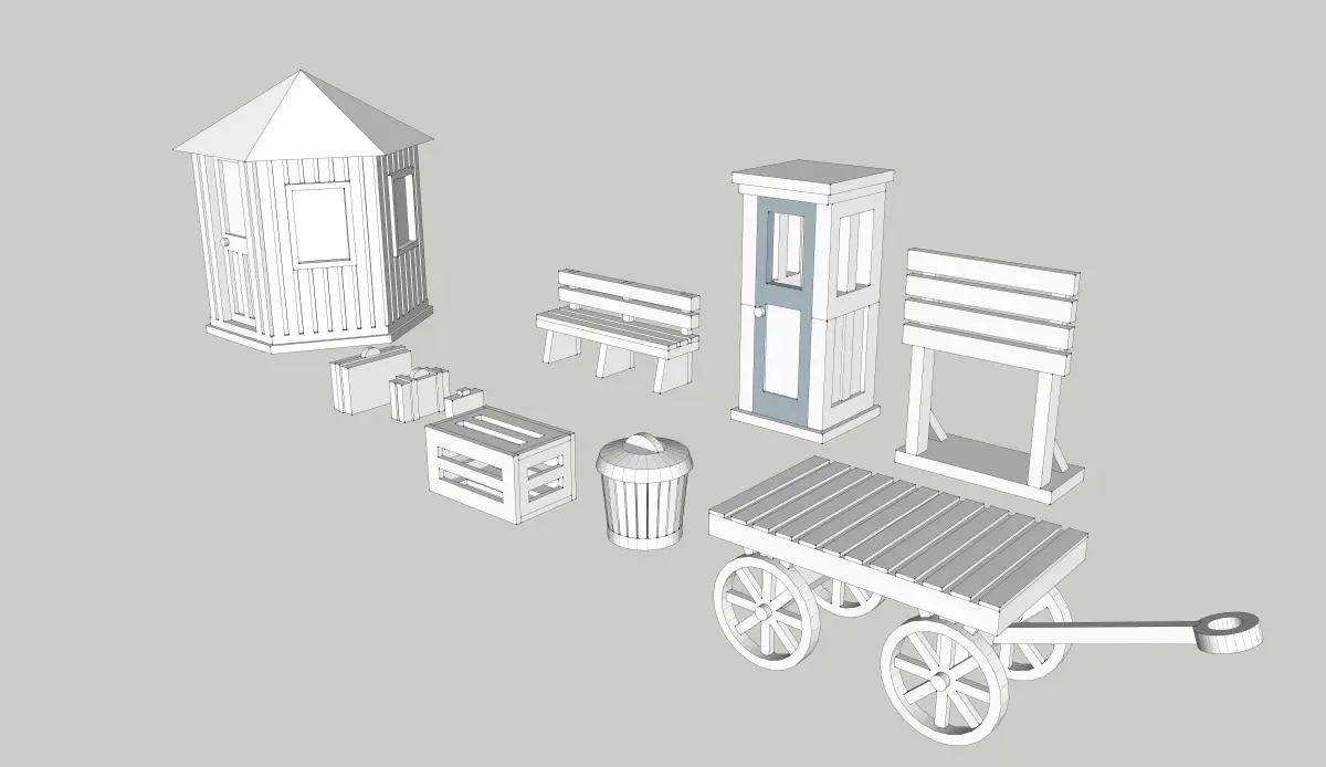 Station Park Accessories Set by Outland Models Low-poly 3D model