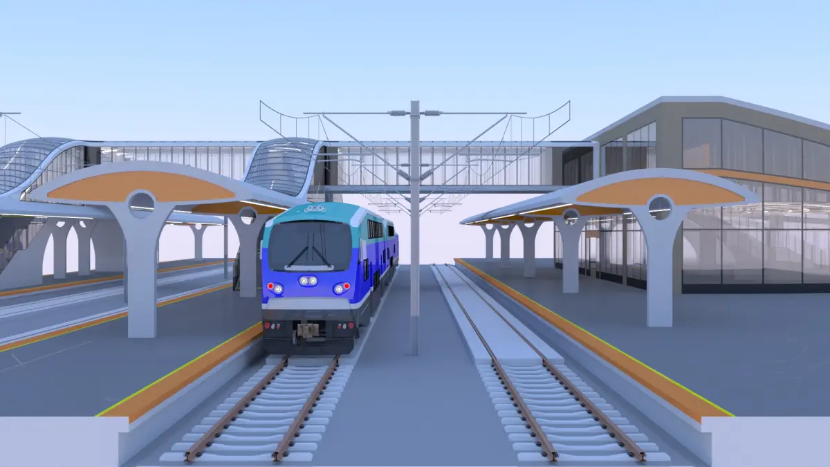 - This is 3D model of railway station with locomotive Siemens SC-44 and Bombardier BiLevel cab car and wagon.