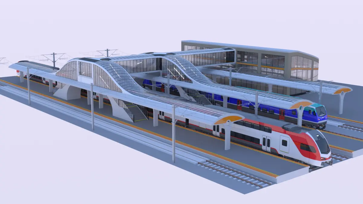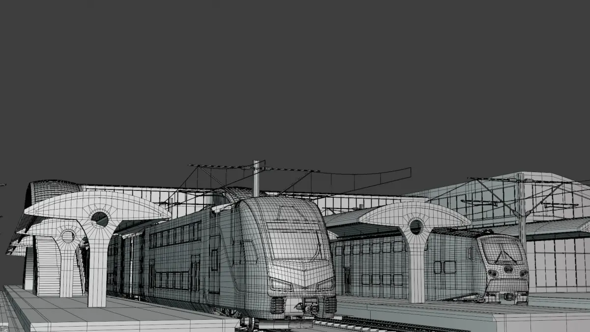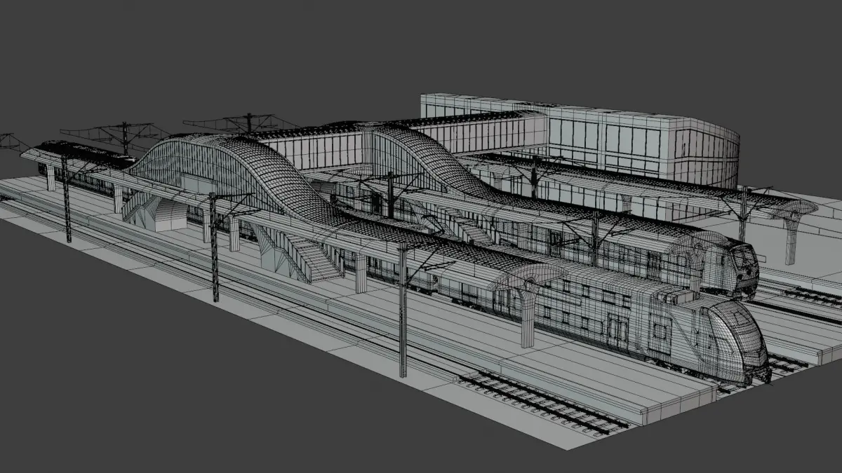 - This is 3D model of railway station with locomotive Siemens SC-44 with Bombardier BiLevel coaches and Stadler Kiss doubledeck train.