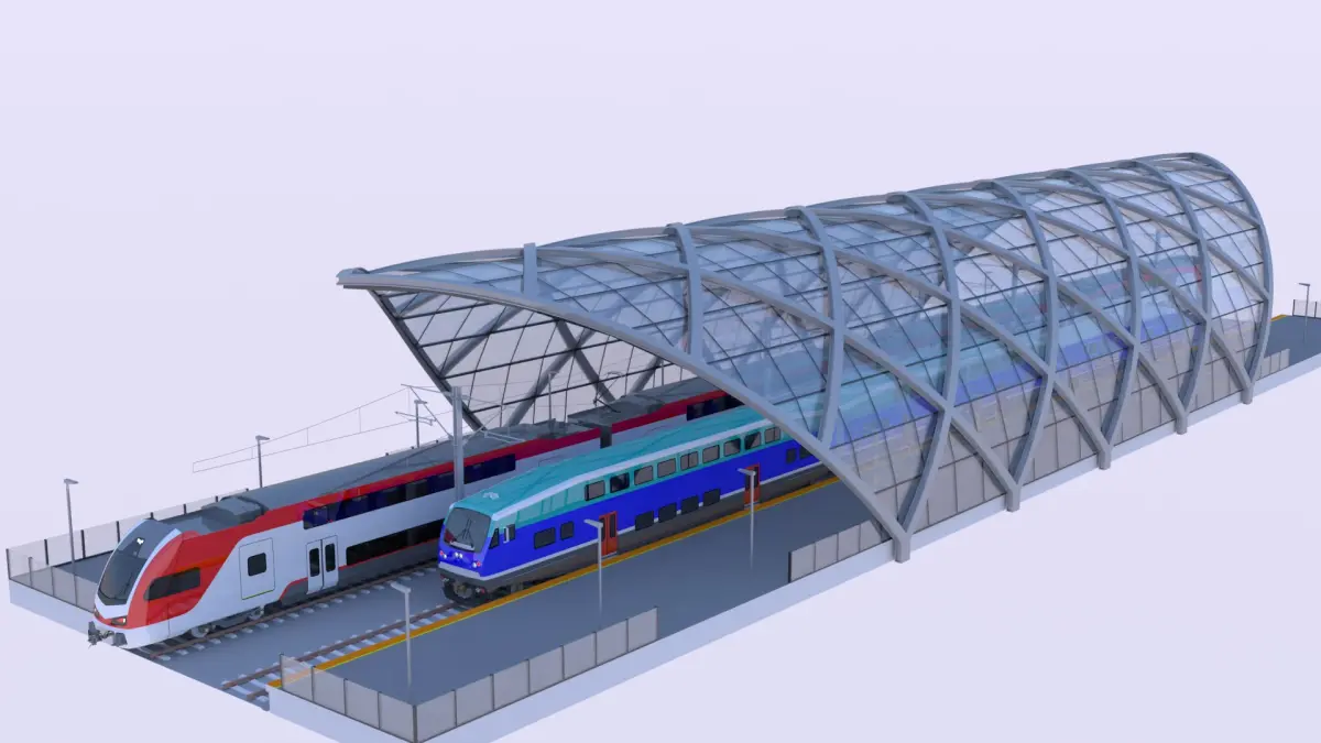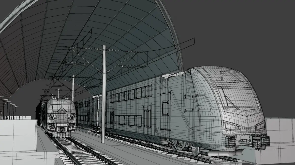 - This is 3D model of railway station with locomotive Siemens SC-44 with Bombardier BiLevel coaches and Stadler Kiss doubledeck train.