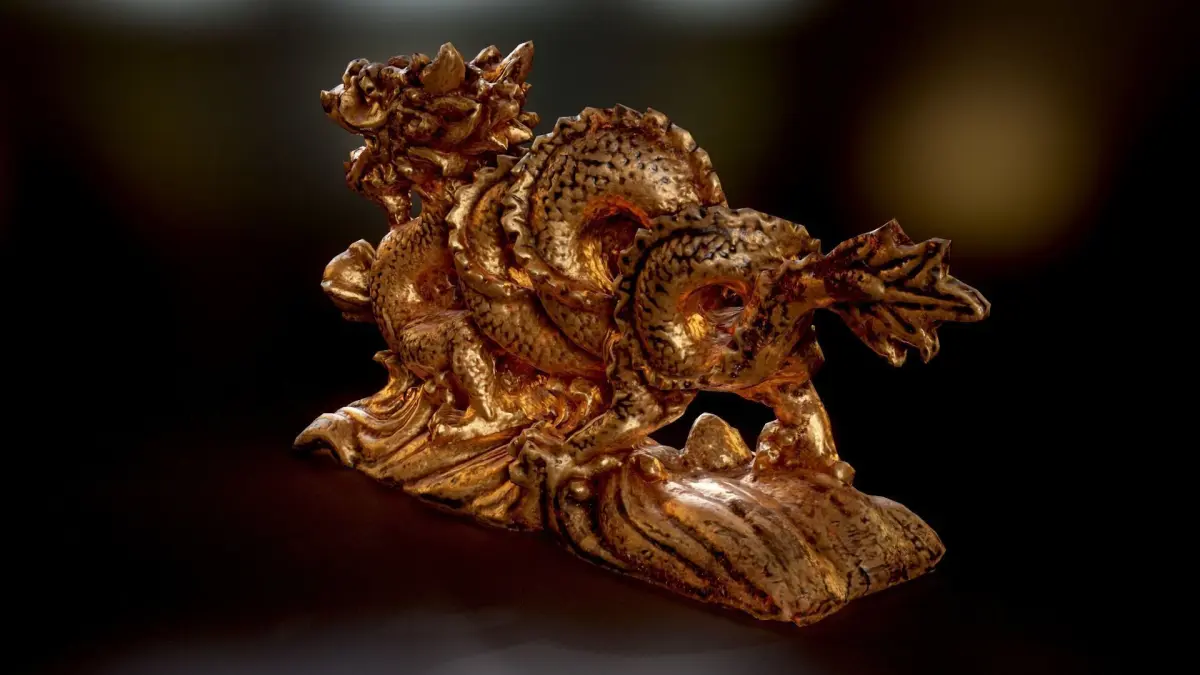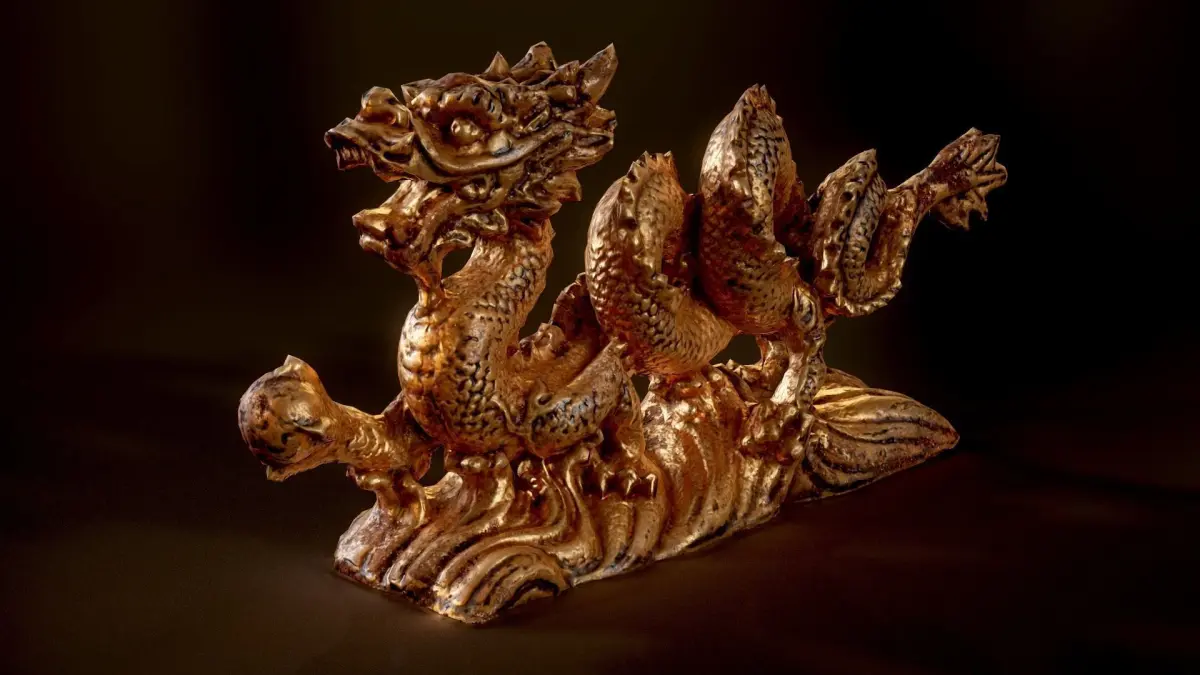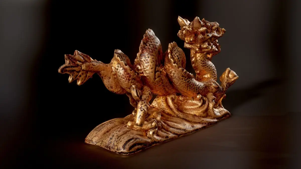 Low poly, PBR, game-ready, small golden dragon figure model. Screenhots are taken in Marmoset Toolbag.