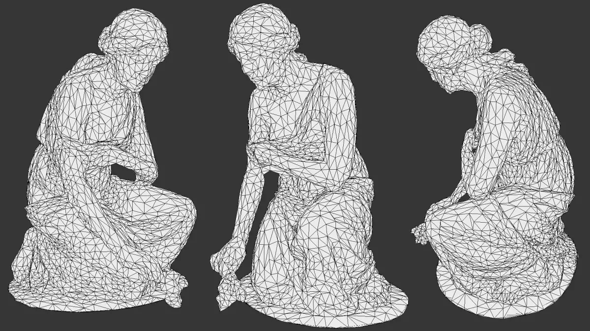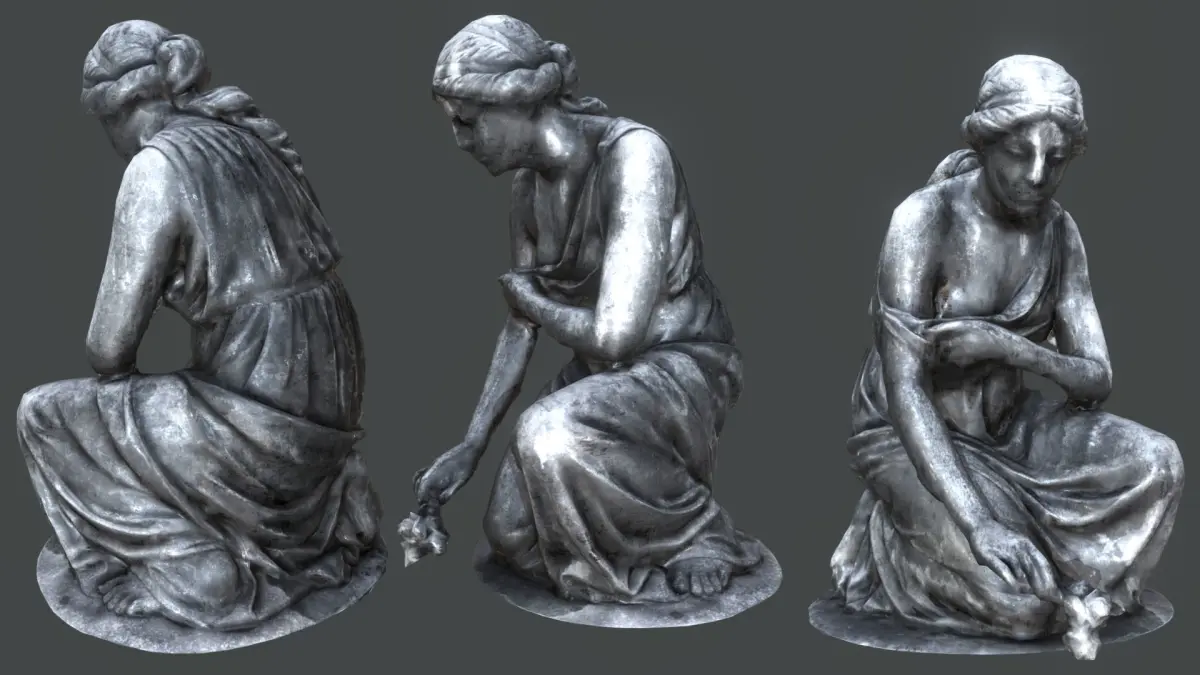 Very Detailed old Statue / Sculpture of a woman in kneeling in grief with High Quality Mesh and PBR Texturing