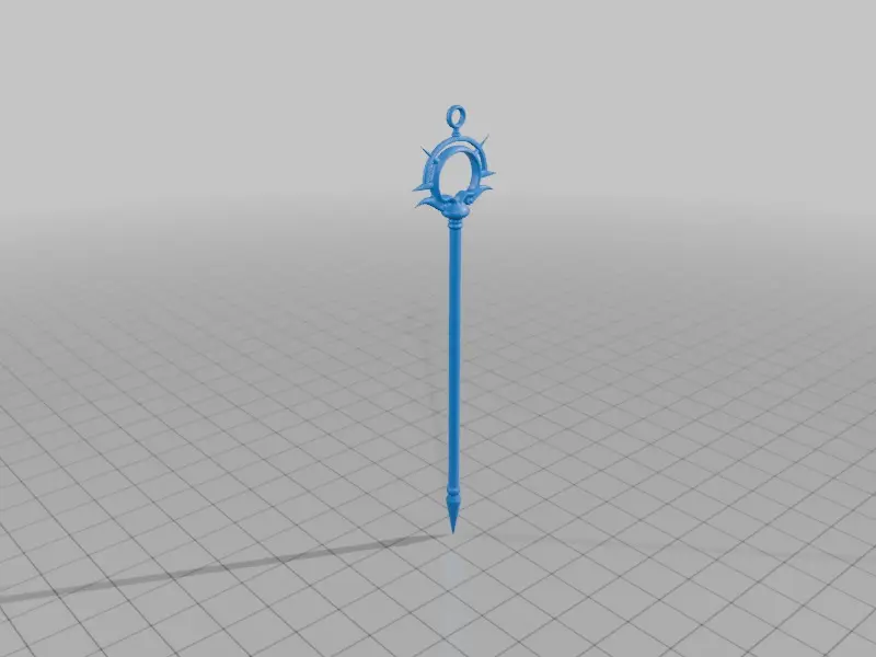 The clothing is detailed with texture that suggests folds of cloth and armor-like elements on the legs. The figure holds a staff topped with a decorative circular crest that may symbolize a certain rank or power.This Herald statue will be a beautiful addition to your office or design cabinet.