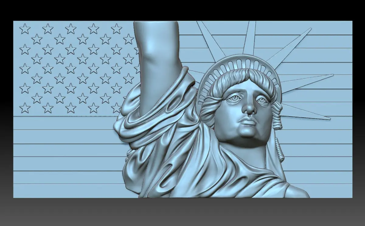 3d model of a bas-relief depicting the Statue of Liberty on the background of the American flag. The work is suitable for CNC machine and 3d printer.