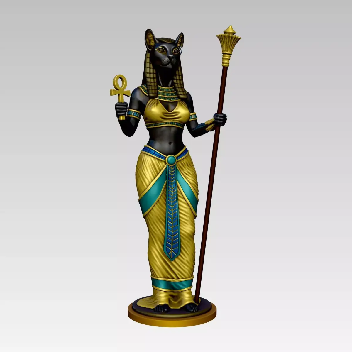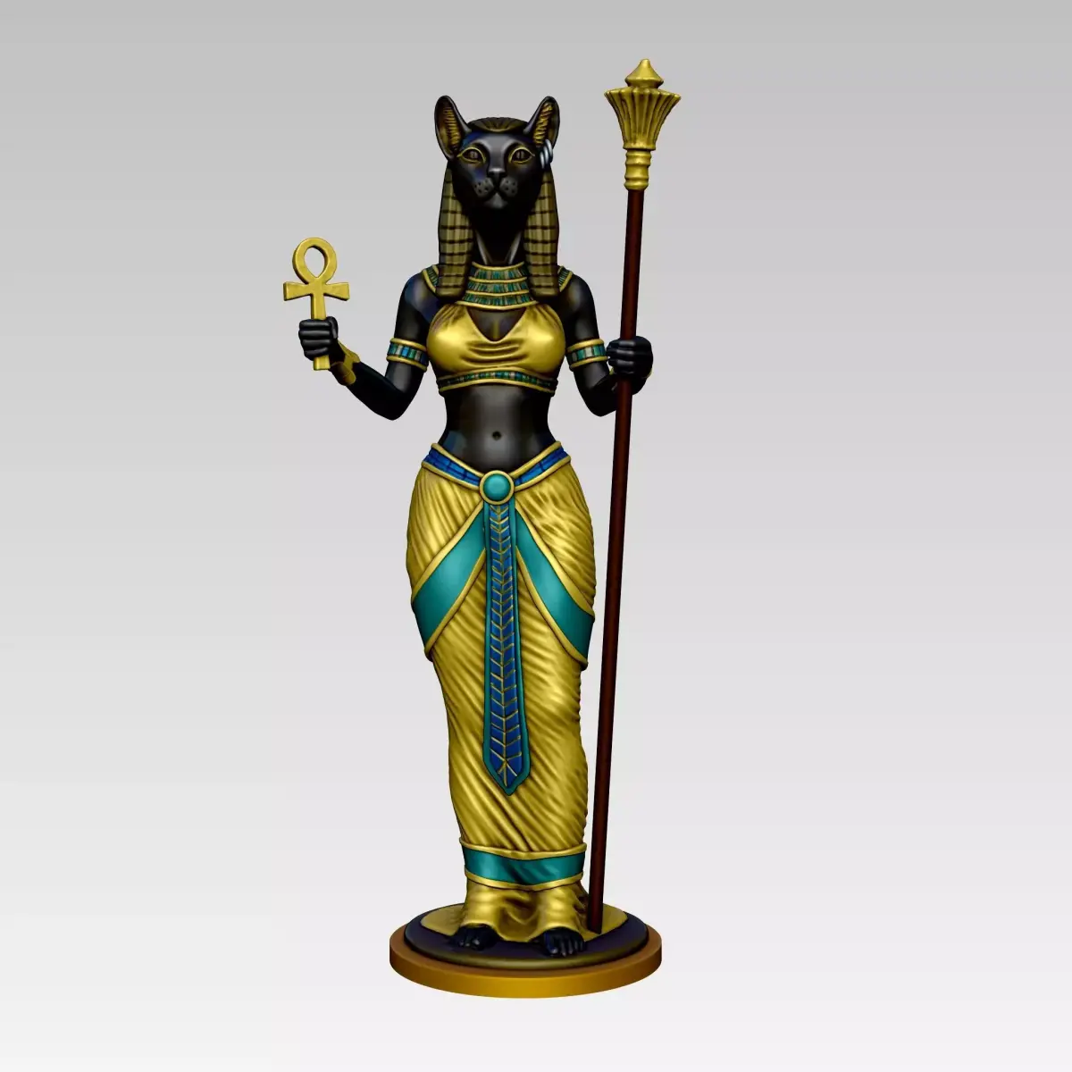 Design ConceptThe statue represents Bastet, an ancient Egyptian goddess symbolizing protection, cats, and home. The design reflects traditional Egyptian artistry, with vibrant colors and intricate hieroglyphics.