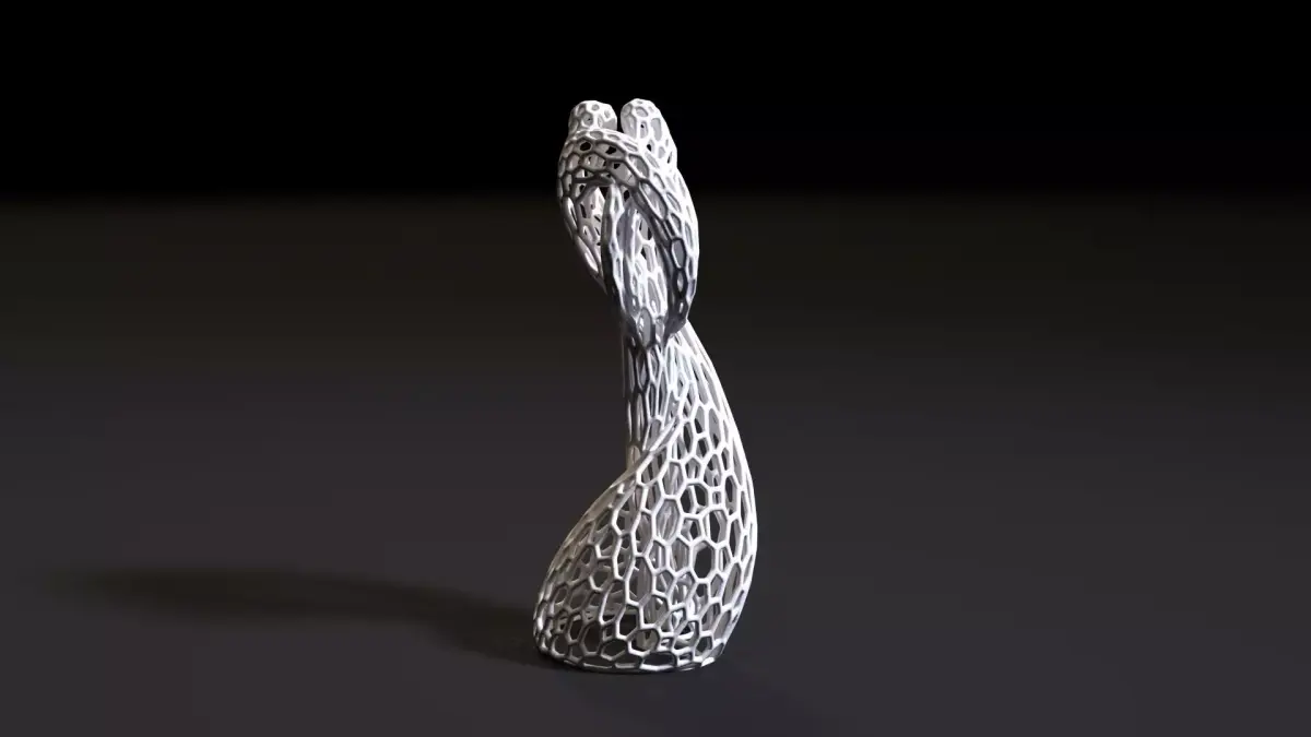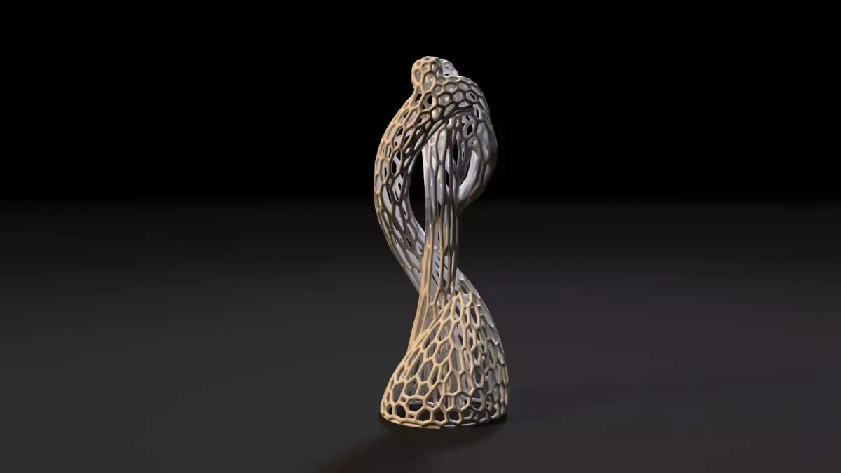 This elegant 3D model is a statuette of two connected figures symbolizing love and unity. Made in the modern Voronoi style, it creates the effect of a light geometric grid of polygonal elements, giving the work a modern and refined look.
