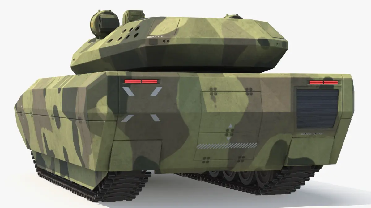 For defense visualization, military strategy simulations, real-time strategy games, war training platforms, AR/VR experiences, film production, and promotional projects requiring futuristic armored vehicle representations.