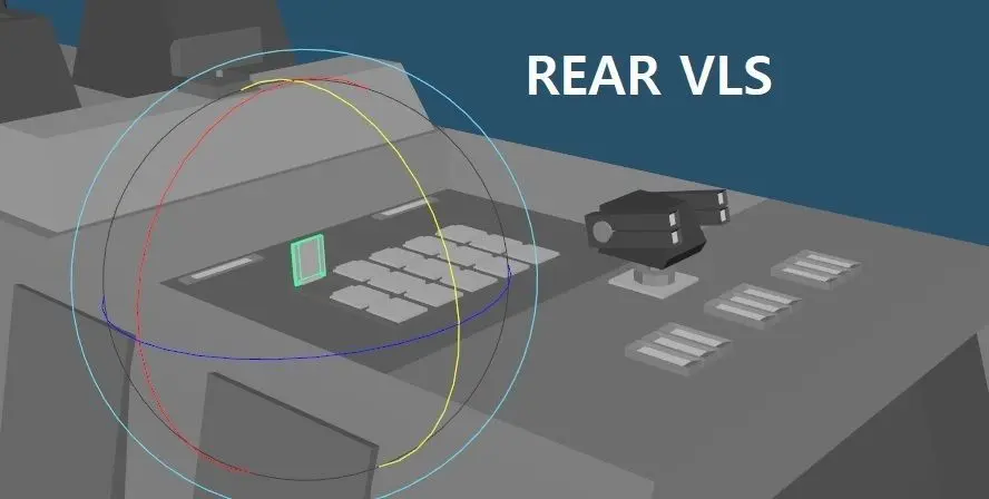 This Frigate has a polygon count of less than 20,000 facesand 20,000 verts, this is a low polygon with functional VLS canistersfor animation purposes