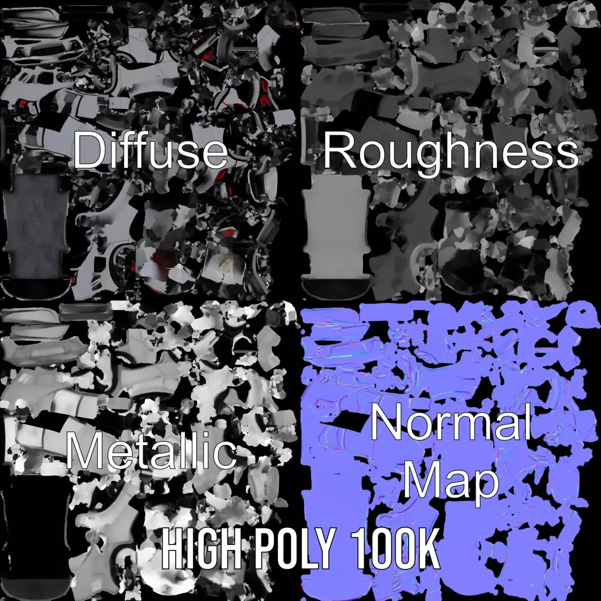 Experience the ultimate in vehicle design with the Stealth Racer Black model pack. This sleek and aerodynamic model is perfect for any racing simulation or automotive visualization project. Each model has 3 levels of detail: low-poly(1000 triangles for mobile), middle-poly(10,000 triangles for environment), and high-poly(100,000 triangles), allowing for use in production rendering with software such as 3ds Max, Maya, Cinema 4D, Blender, Vray/Corona/Cycles, game engines Unity and Unreal, and interactive presentations. The model's textures are PBR, Diffuse, NormalMap, and reflection/roughness/metallic, ensuring compatibility with any modern rendering engine. All models are accurately unwrapped with no overlapping UVs. All textures are 4096x4096 in size. Ideal for automotive marketing, virtual reality, or exciting game environments. If you like the model, please leave a like and comment!