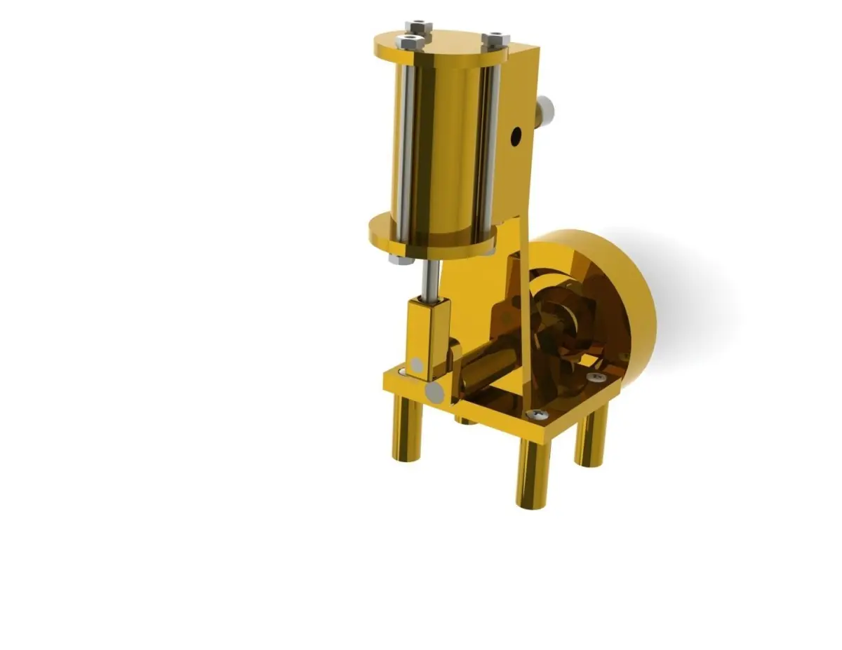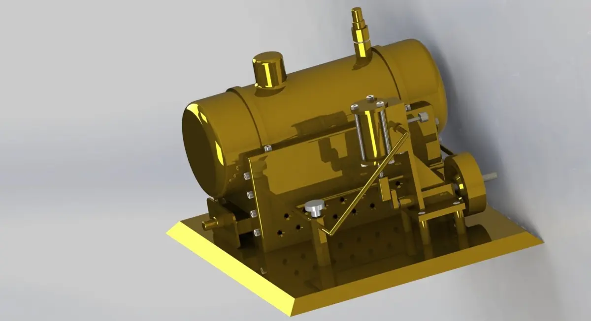 DIY Steam engineThis is a model of a fully functional steam engine that you can build yourself. I made mine out of brass.This project features 3D models, renderings and technical drawings.3D models: SolidWorks (sdlrp,sdlasm); Fusion 360; stl; obj; 3mfRenderings: JPGTechnical drawings: JPG