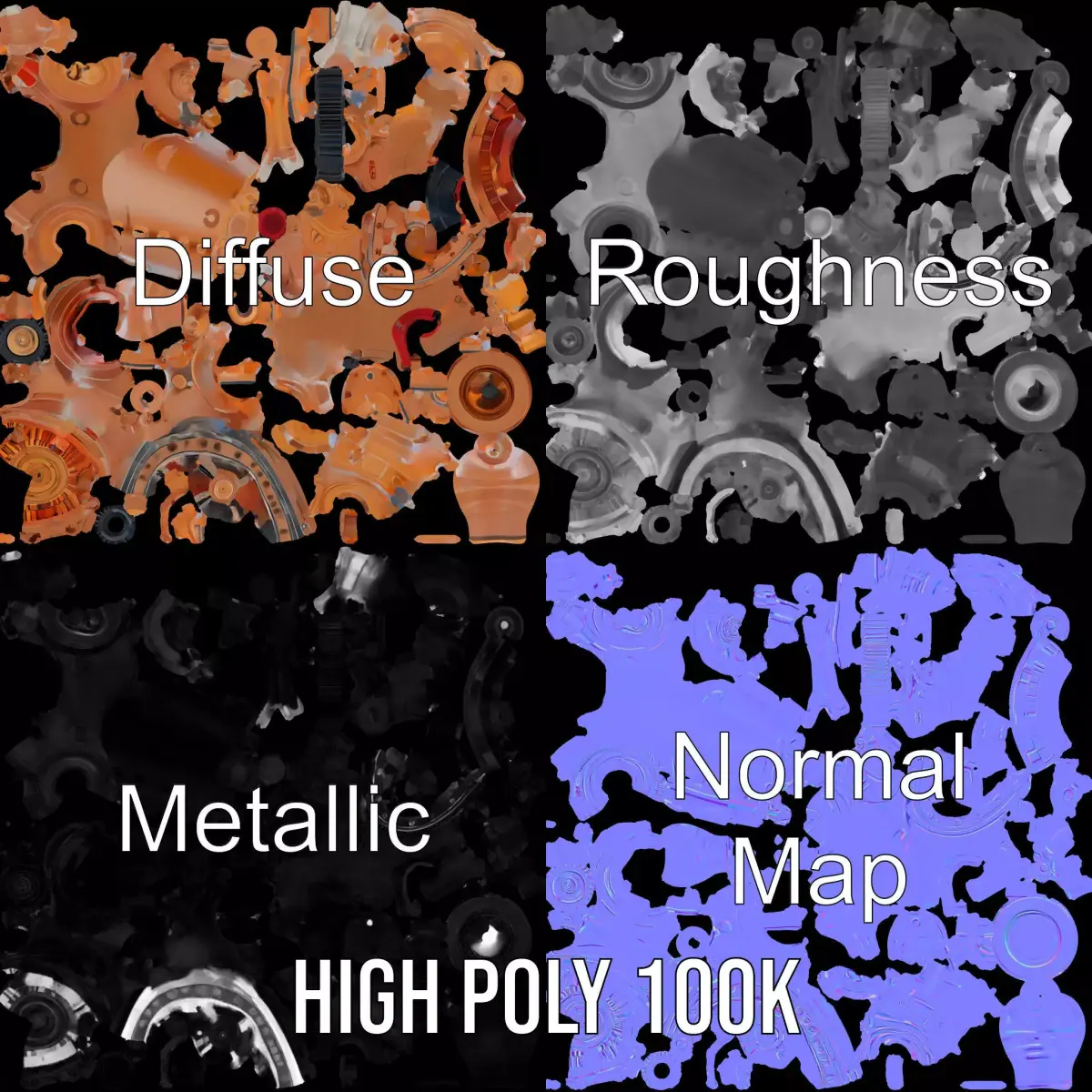 The model's textures are PBR, Diffuse, NormalMap, and reflection/roughness/metallic, which are suitable for any modern rendering engine. All models accurately unwrapped and have no overlapping UV. Textures are 4096*4096 in size.