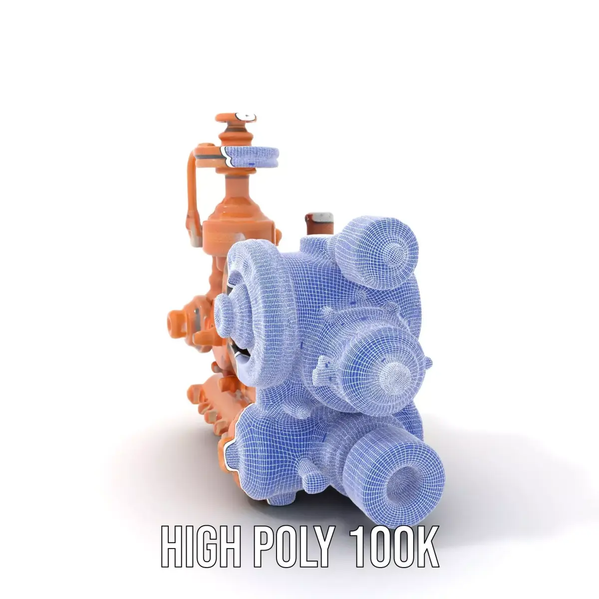 The Steam Engine Gear model pack is a meticulously crafted 3D model featuring intricate steampunk detailing. Ideal for use in virtual environments, historical animations, or game design, this model brings a classic industrial aesthetic to life. Each component displays precise engineering with a copper finish and realistic textures.