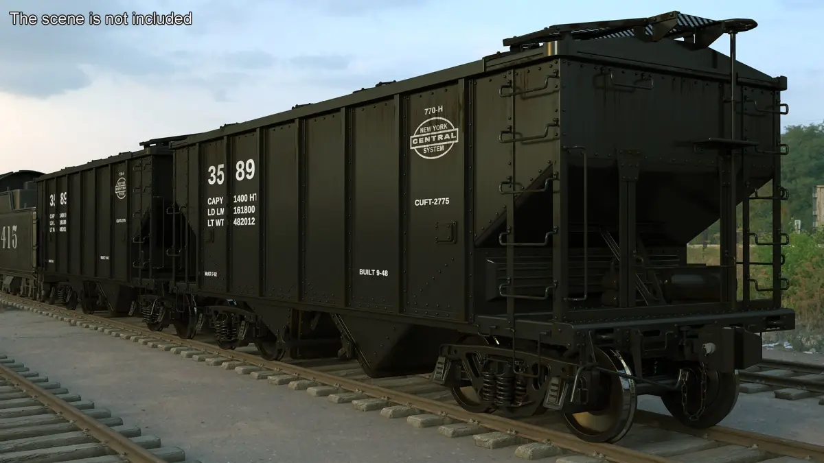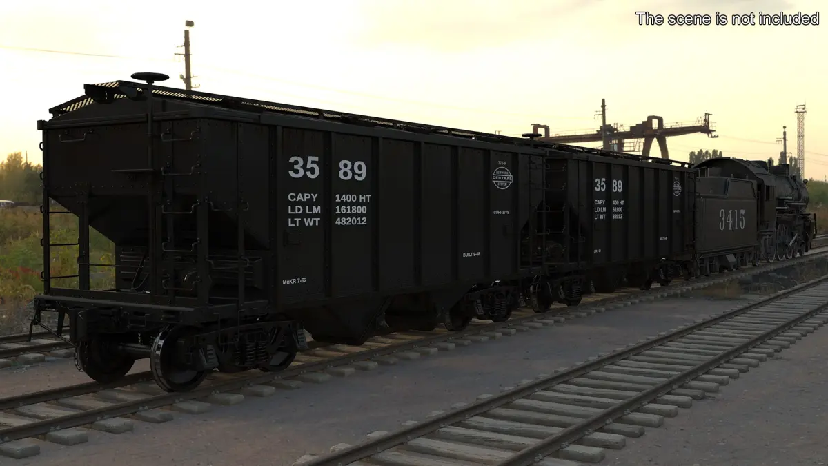 Steam Engine with Covered Hopper Cars is a high quality, photo real 3d model that will enhance detail and realism to any of your rendering projects. The model has a fully textured, detailed design that allows for close-up renders, and was originally modeled in 3ds Max 2014 and rendered with V-Ray. Renders have no postprocessing!