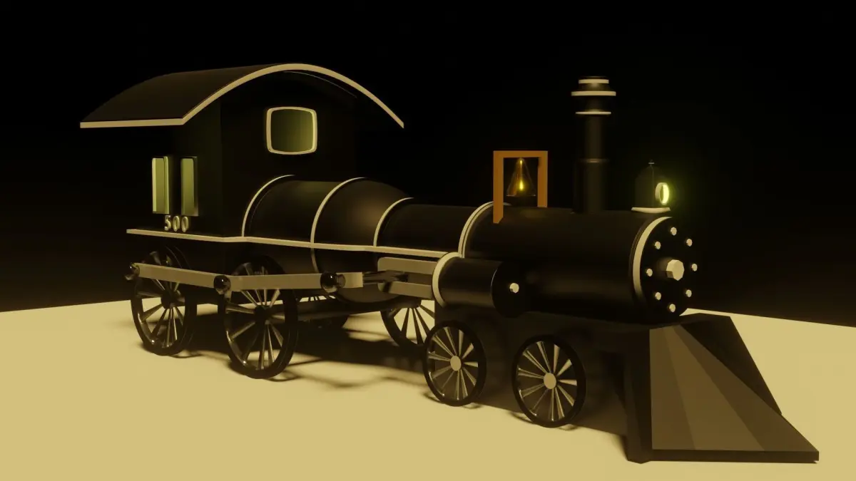 I've modelled this train based on an old train. This is a high poly train with sub divisions upto 3. This train was rendered using eevee, you may switch to cycles if you like but you will loose bloom effect. This file comes with volumertic shader applied to the world. If you want simple train then remove volumetric shader in shader editor.