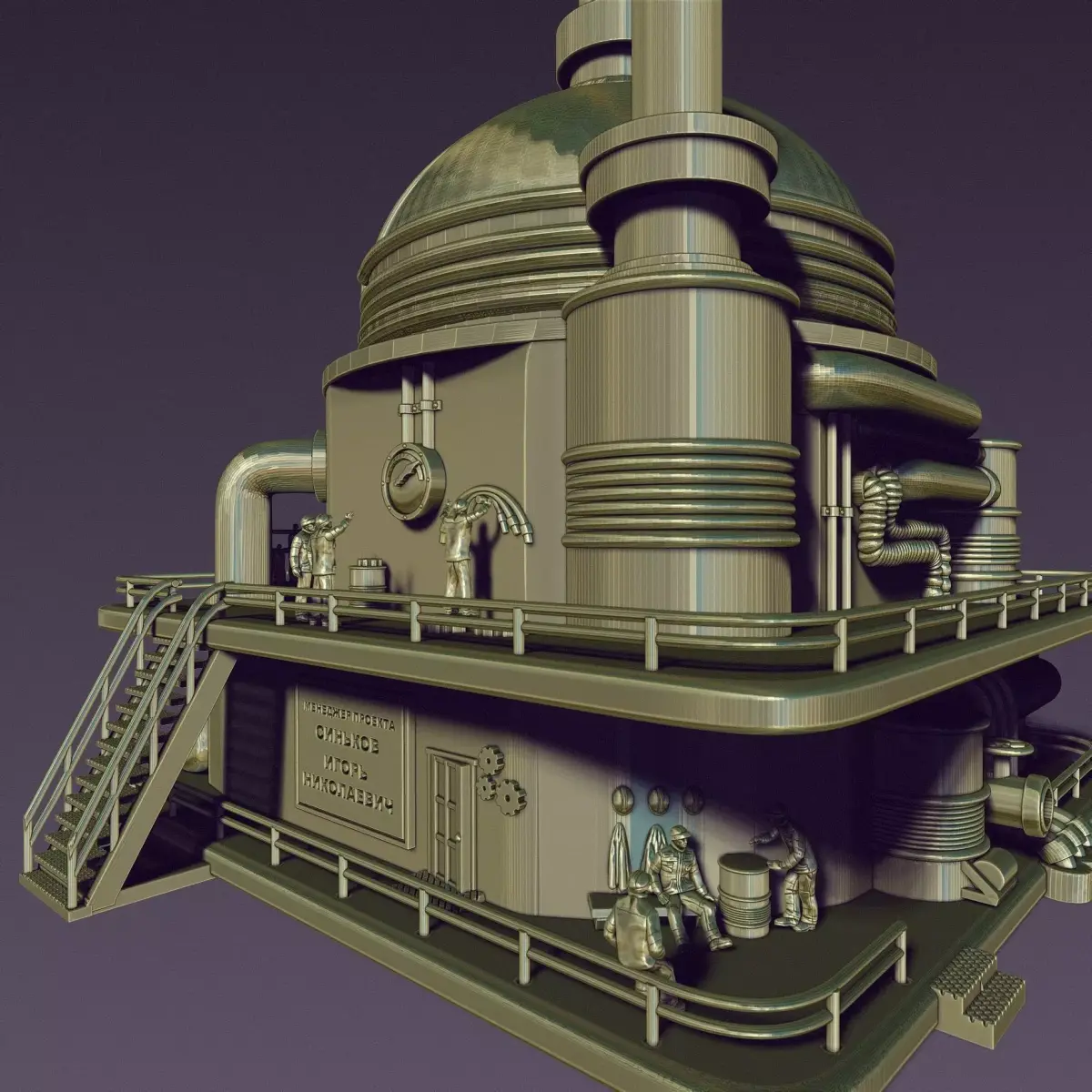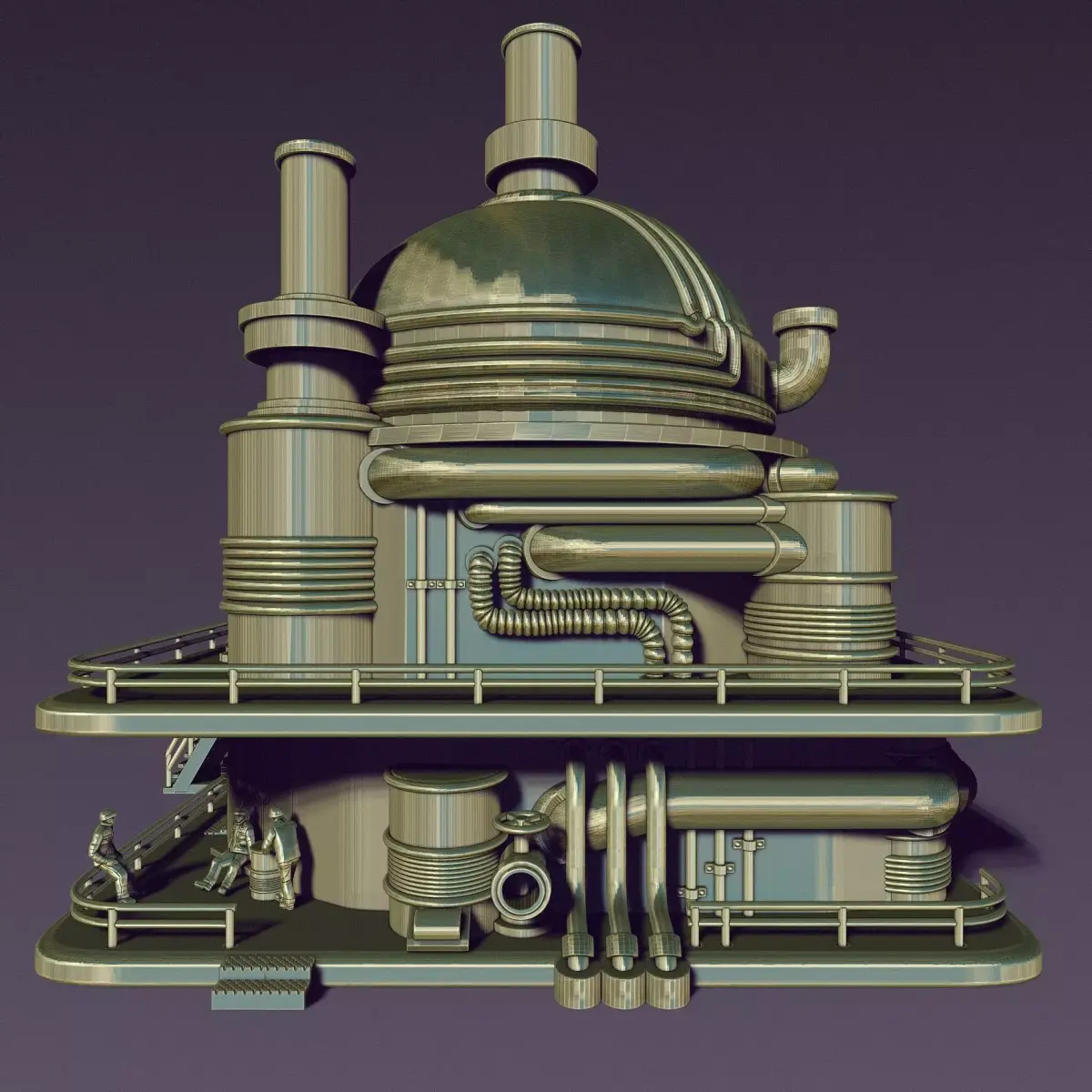 The STEAM PUNK BOILER BOX consists of three levels, lower, middle, and lid, with a separate file of little men and small details. consists of three levels, lower, middle, and lid, with a separate file of little men and small details.The total height of the model is 250mm.