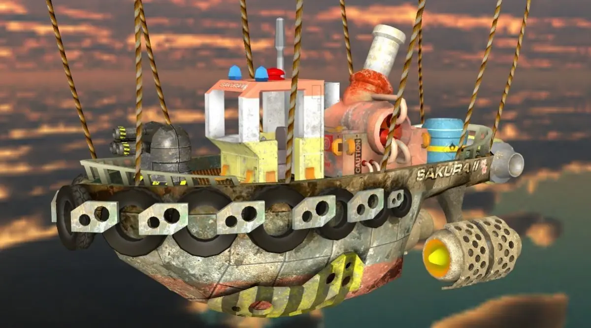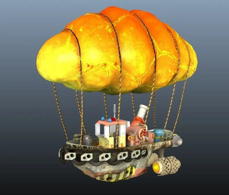 Steam Punk style Tug Boat airship. Comes with several texture maps, Colour, Ambient, normal and specular maps. A Forward mounted gun turret that can be animated as pivot points are in the correct places. Game Ready.