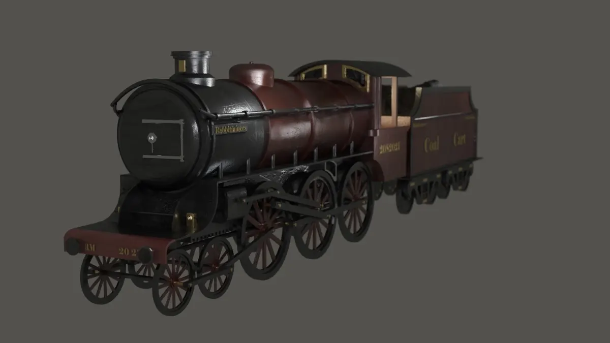 Fairly Detailed Steam Train Model, (200,000 verticies) 250 UV Maps can be found inside the .blend file and all textures are attached. (not rigged) (Landscape Shown In Images Is Not Included And Is an Example of usage)