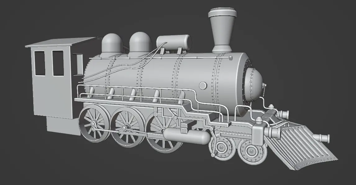 ِِAn old fashioِِِned original design steam train UV unwrapped and texturedinspired by old locomotive refernace images from the internet, no AI used.This expertly crafted steam train model combines a robust design with clean UV maps and high-quality textures, ready for seamless integration into your creative projects
