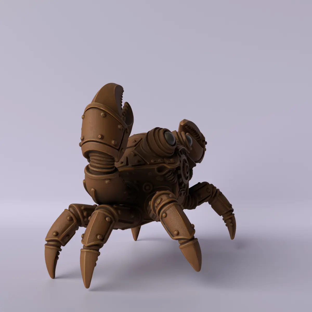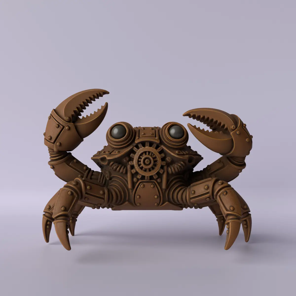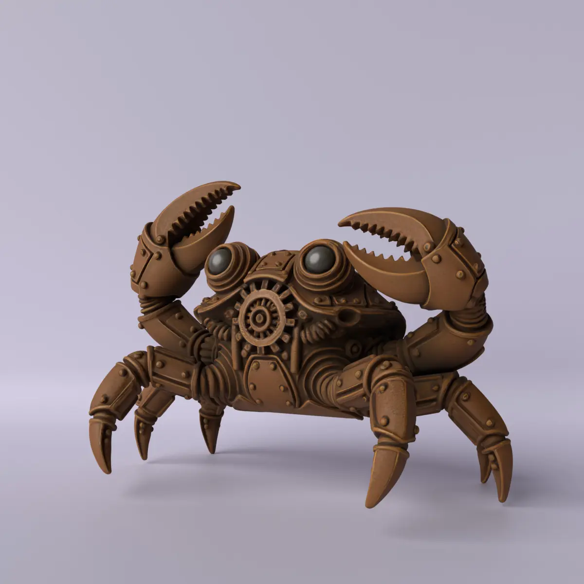 A steampunk-style crab sculpture featuring a metallic shell, exposed gears, pipes, rivets, and a striking retro-futuristic design. This piece fuses nature and mechanics, creating a creature that looks like it came from an alternate universe. Perfect for collectors, fans of fantasy art, industrial decor, and high-impact 3D printing projects.