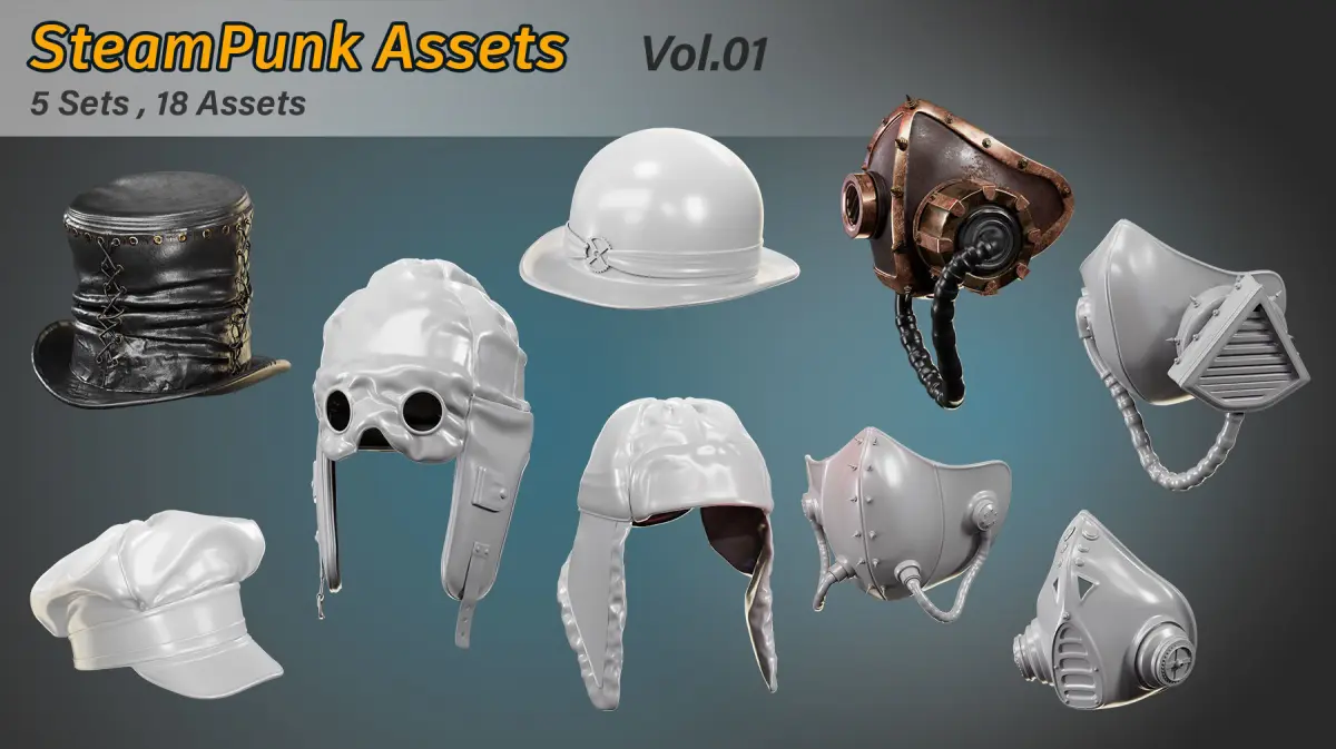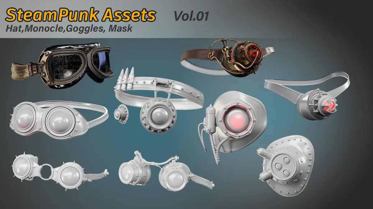 5 Hats and Caps5 Monocle Glasses4 Pilot Style Goggles4 Face MasksUV and clean topology Highpoly Quad meshOptimized Models3D models in OBJ and FBXVertices: ~250.000-450.000