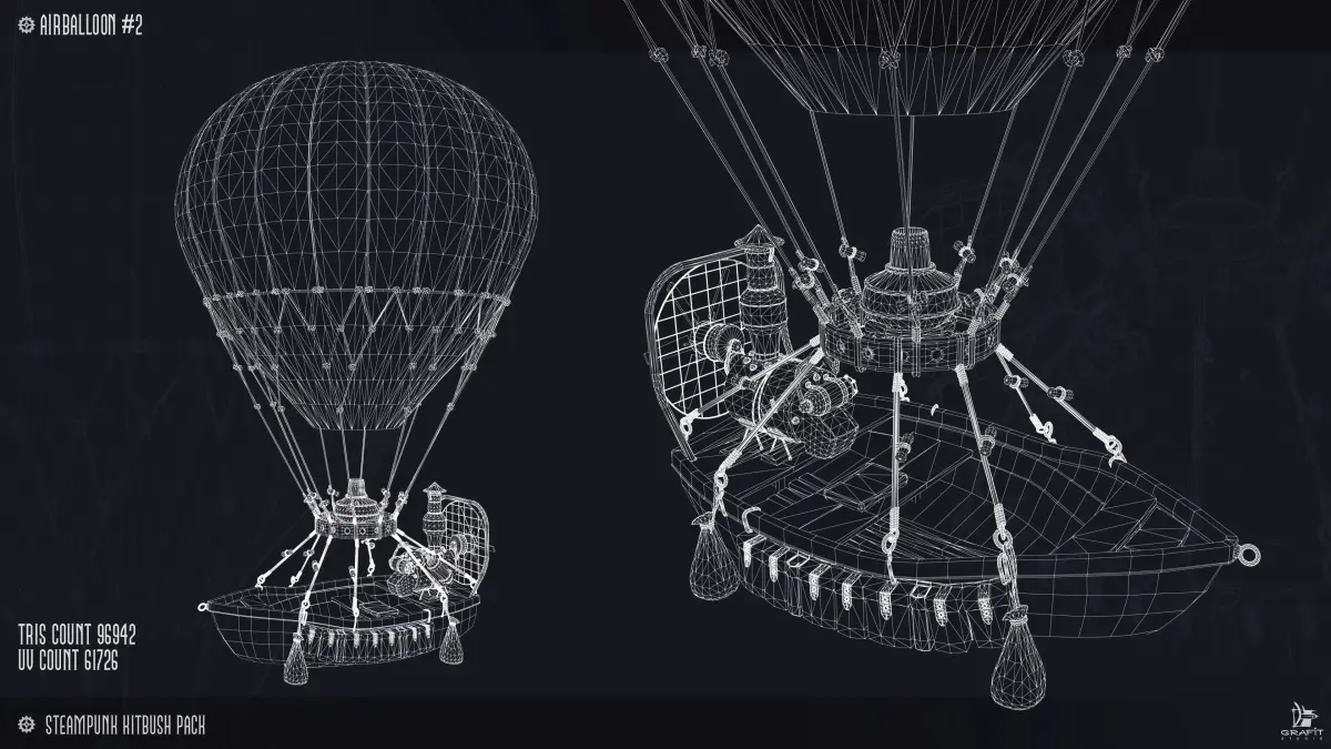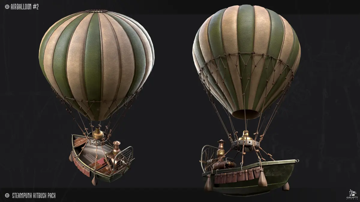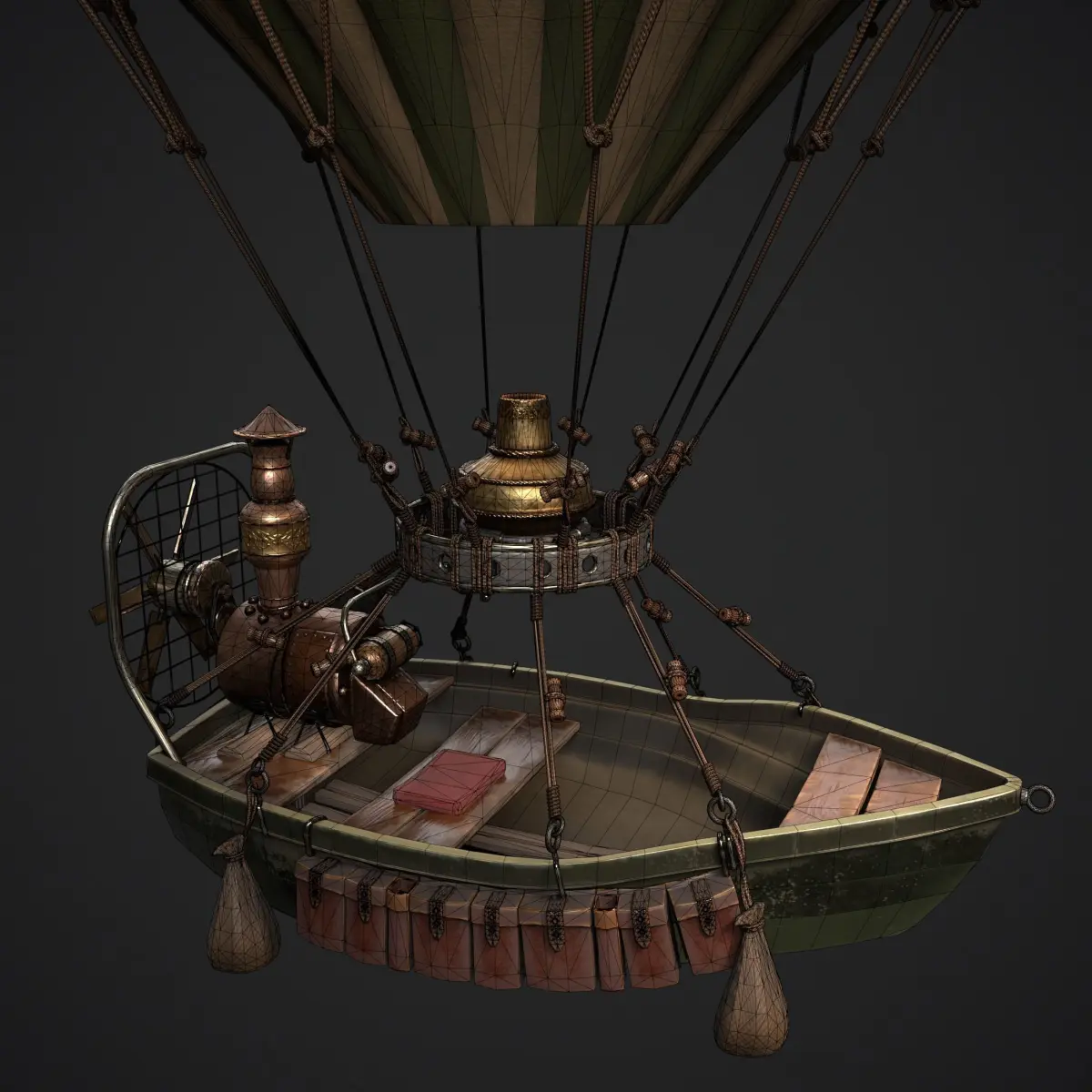 Model of air balloon boat is optimized and can be used both as a basis for illustration and for the needs of game developers. Air balloon is painted with trim textures.