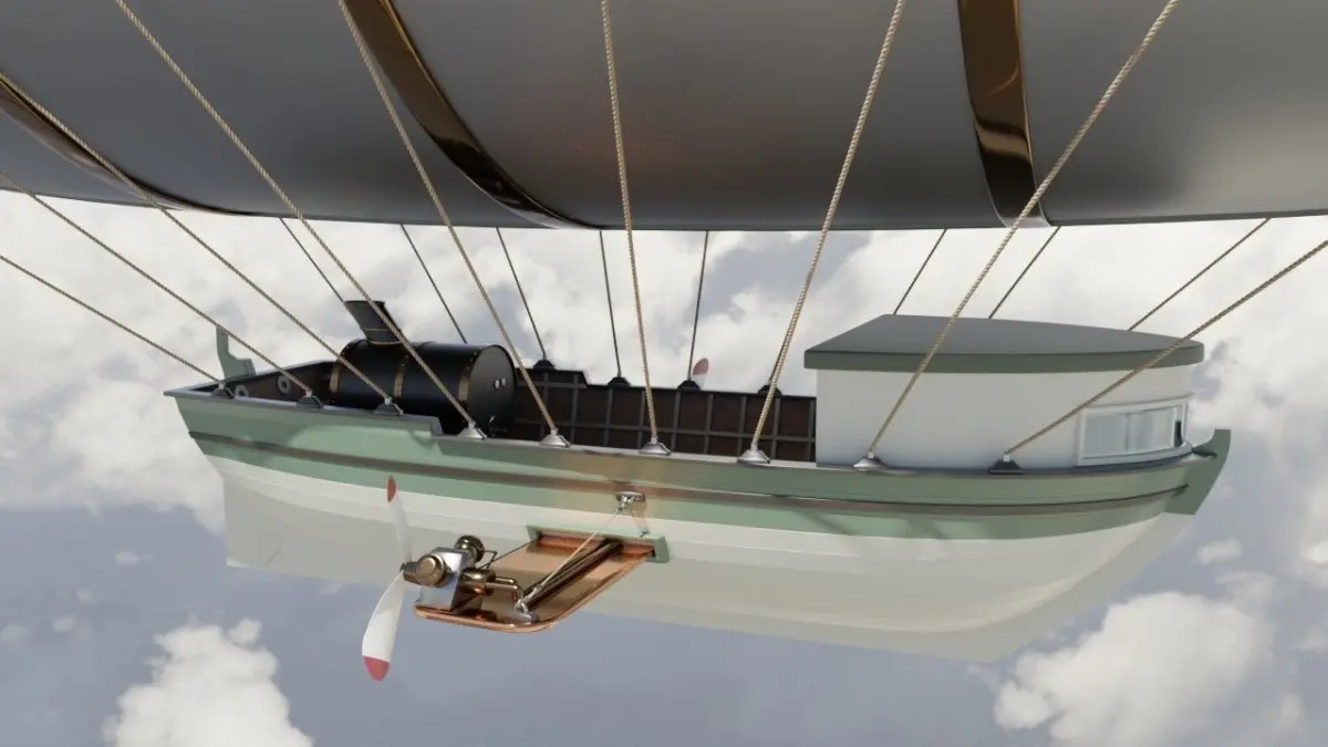 Real world size. Ship length - 19m, aerostat - 80 m.