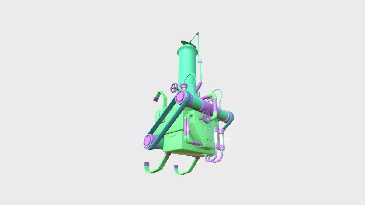 Steampunk Backpack 13 Green Cartoon - Character Design Fashion Low-poly 3D model